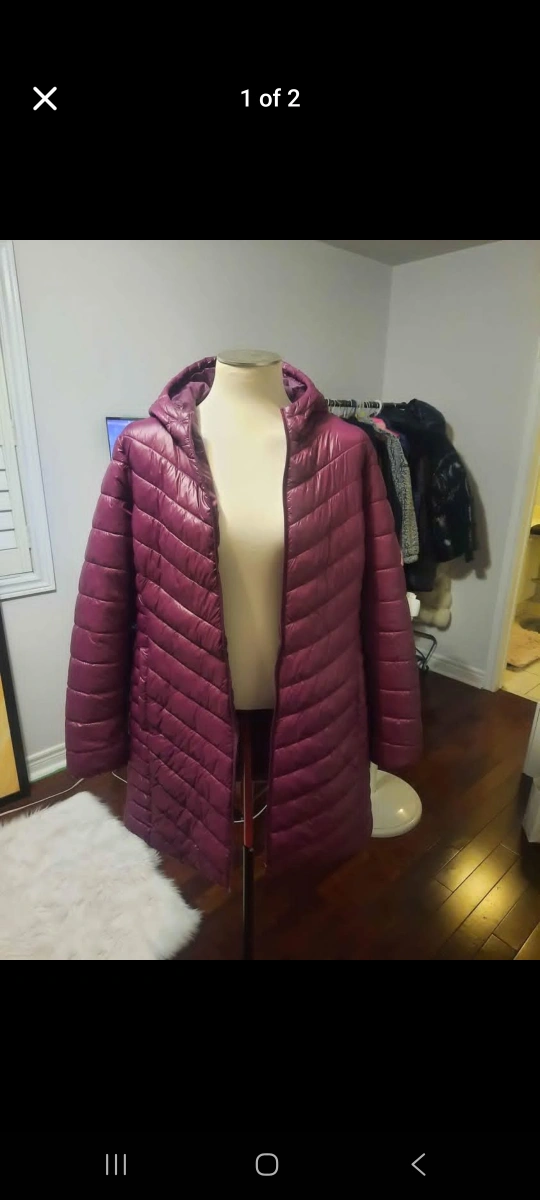 A stylish purple puffer coat, perfect for staying warm and looking good! It's lightweight and easy to wear, making it great for everyday use. This coat is in great condition and ready for a new home pick up only Woodbridge