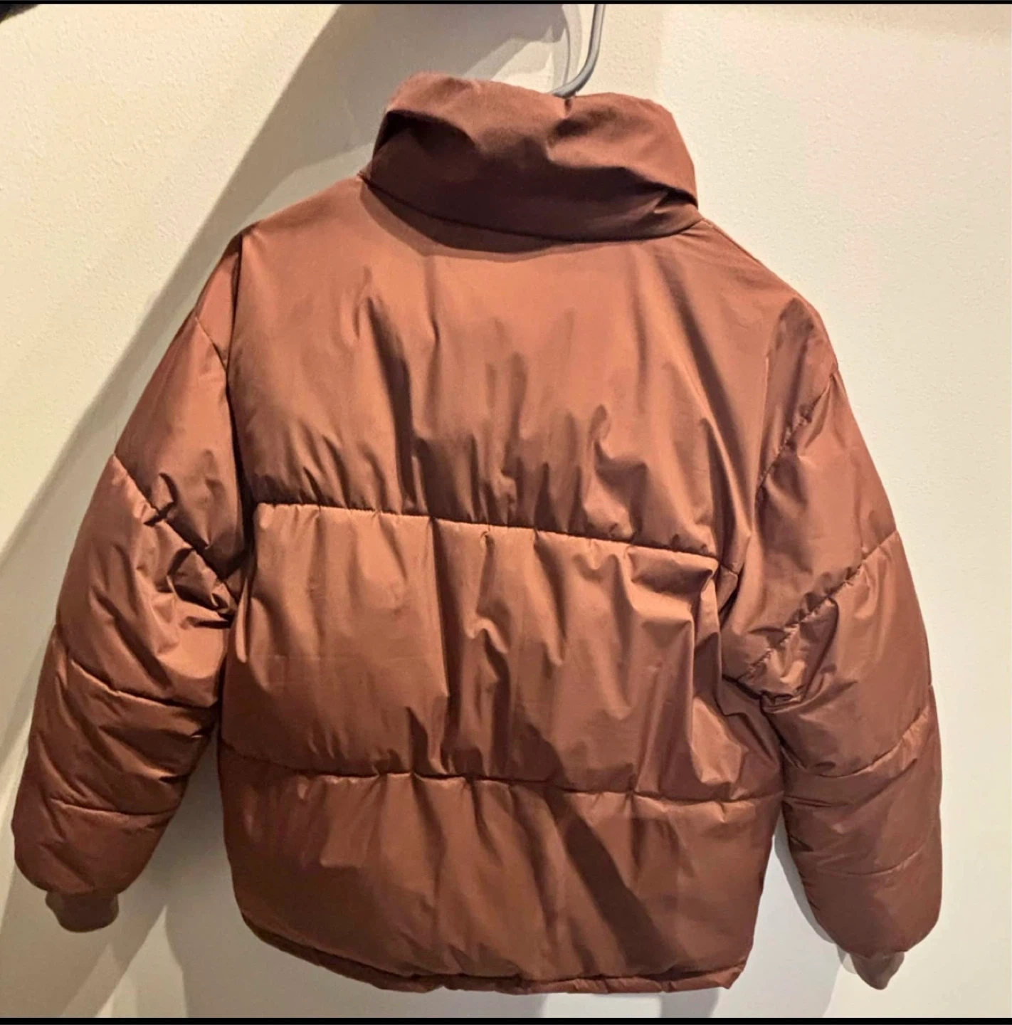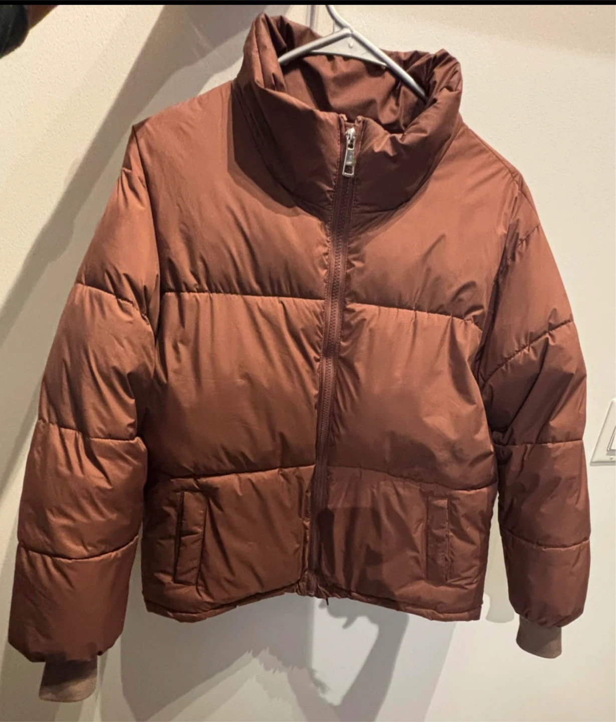 85Selling a brown puffer jacket! It's in great condition and perfect for the colder weather. It has a zipper and pockets.