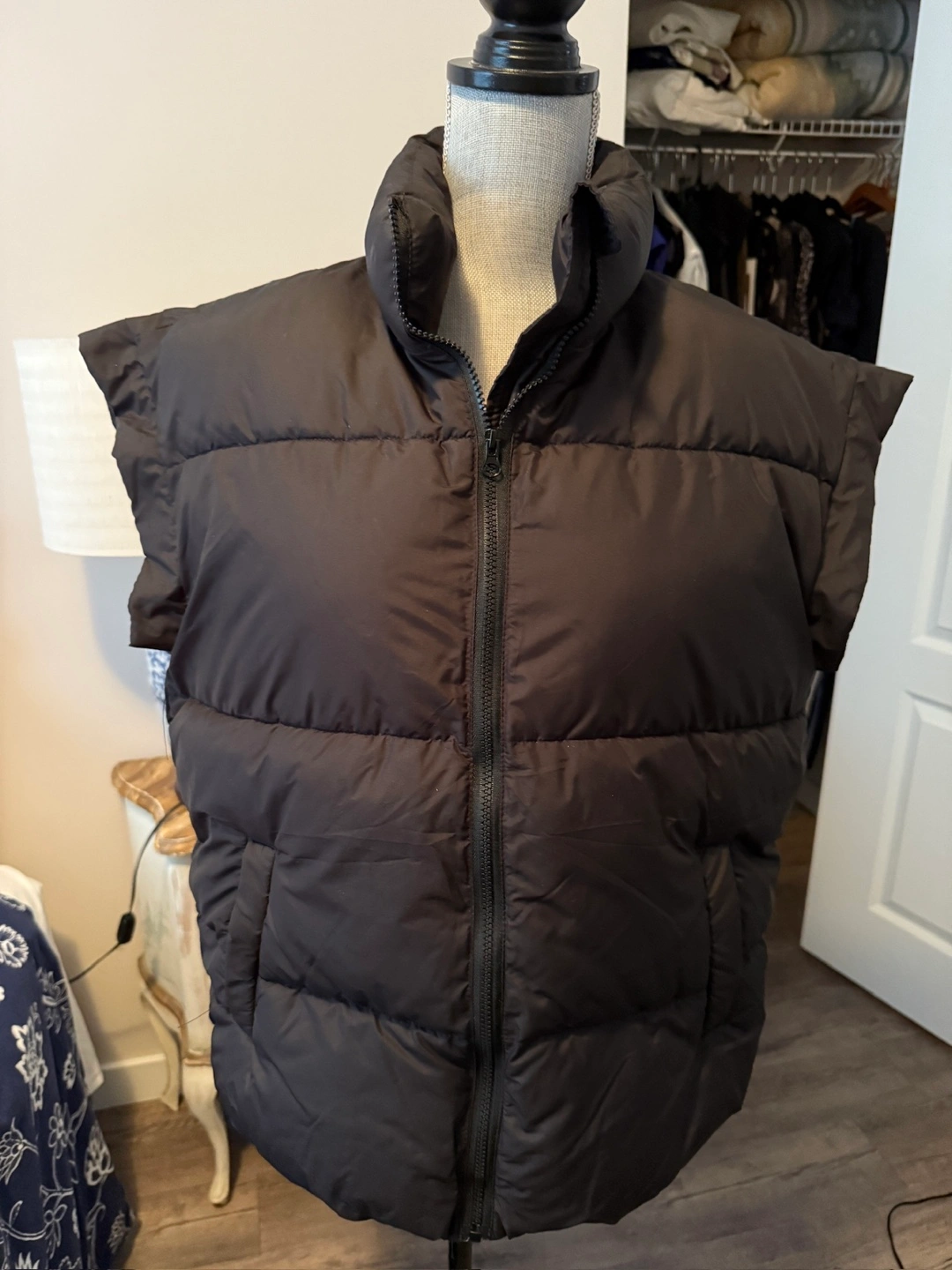 10Selling a NEW black puffer vest. Perfect for layering during the cooler months! The vest is sleeveless and has a zipper closure. Size L. Pick up near 232 & Hwy 1