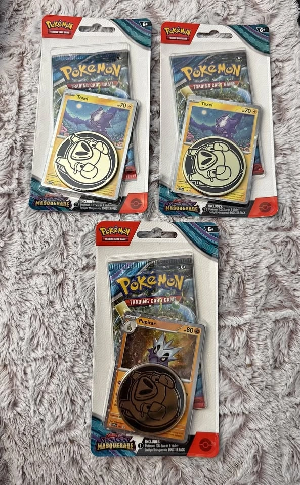 Includes 3 packs: 2 Toxel Promo packs and 1 Pupitar Promo pack. Condition is near-mint, brand new, and sealed. Cash or Zelle only for in-person transactions.