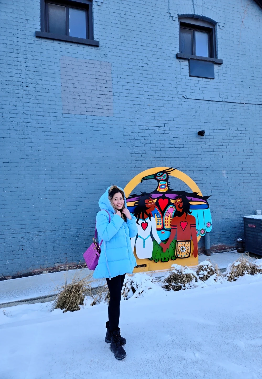 Dabuwawa Light Blue Puffer Jacket with Fur Hood - XL
