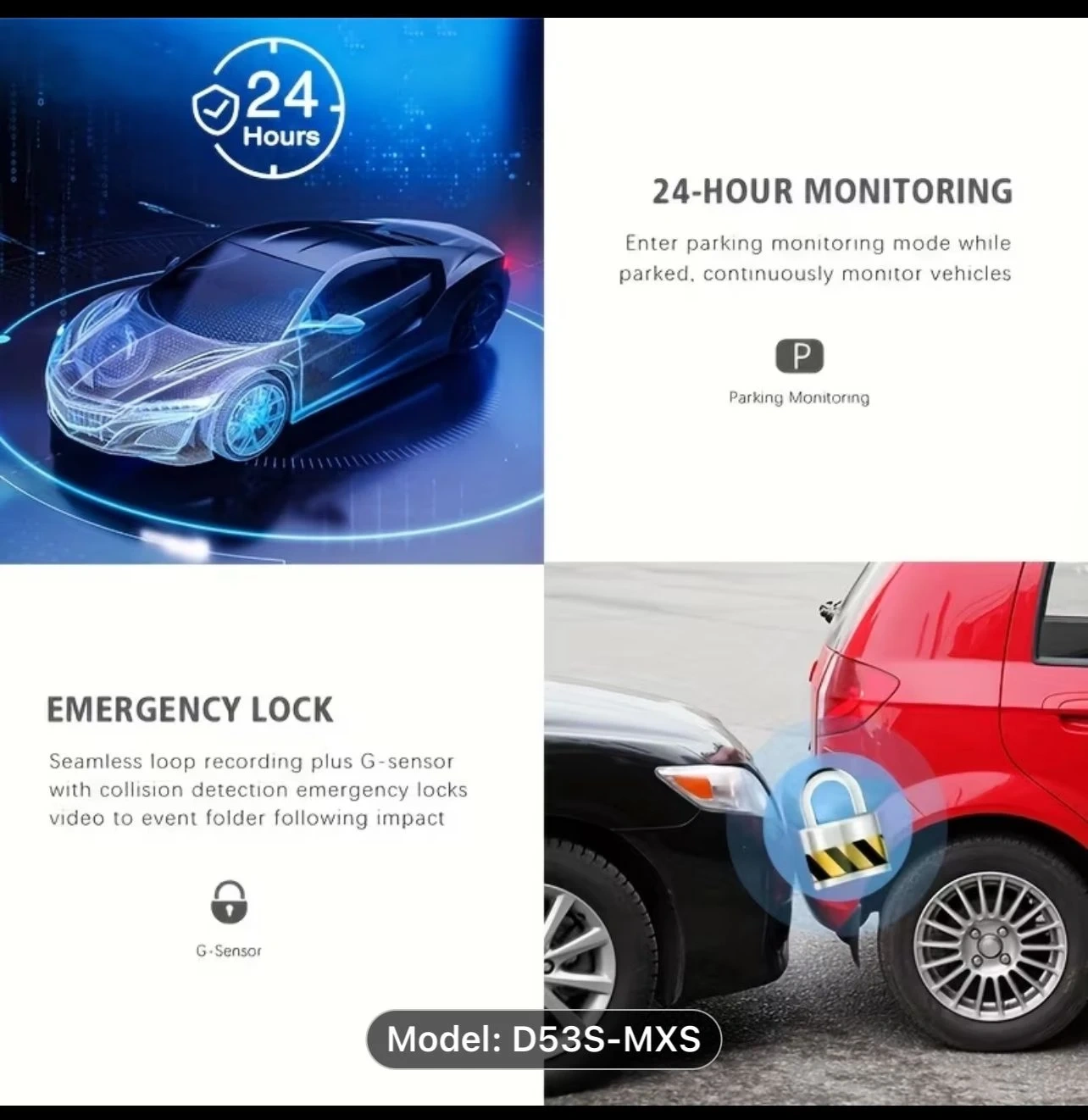 Night vision, motion detection, G-sensor, loop recording, parking monitor