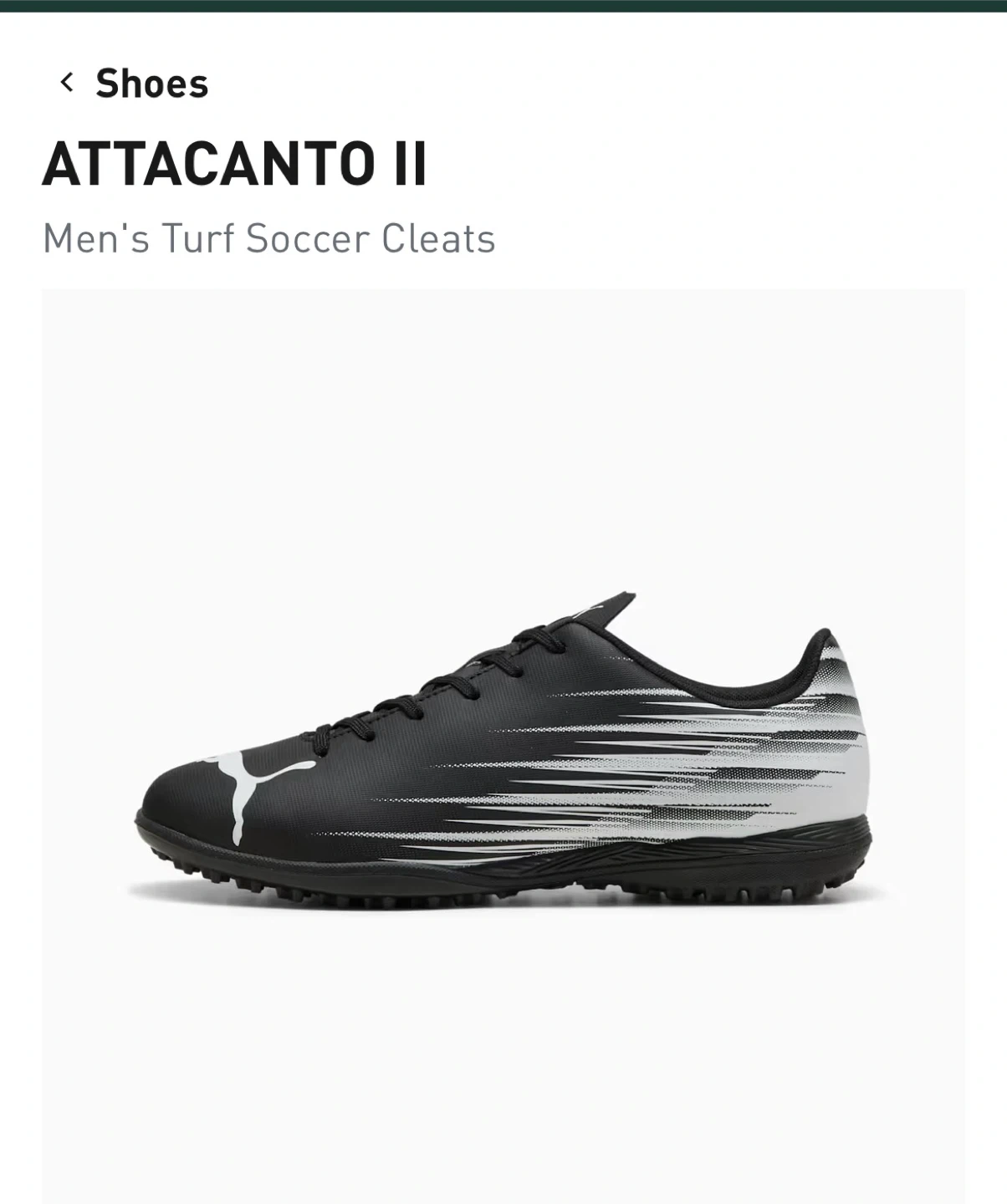 Buy & SellPuma Attacanto II Turf Soccer CleatsPuma Attacanto II Turf Soccer Cleats$44Selling a pair of Puma Attacanto II men's turf soccer cleats in black and white. They're in great shape and ready for the field!ConditionNew0 chats·0 favorites·33 viewsSELLERverifiedJinuRenfrew Collingwood600 reviewsWHERE TO MEETCheck Location