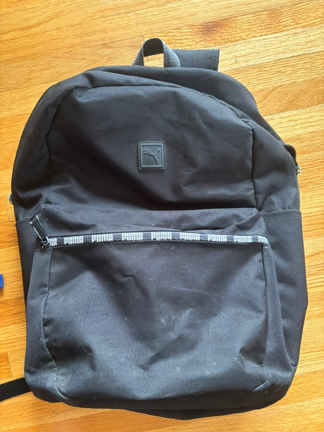 This sturdy Puma black backpack is perfect for school, hiking, or everyday use, featuring a front zipper and 2 compartments inside to keep your belongings organized and water bottle pouches on both sides. While it's been a reliable companion, it's still in good condition and ready for new adventures! * Durable black fabric * Multiple compartments * Adjustable shoulder straps Looking to give this backpack a new home! Don't worry, if you're seeing this ad, it's still available!