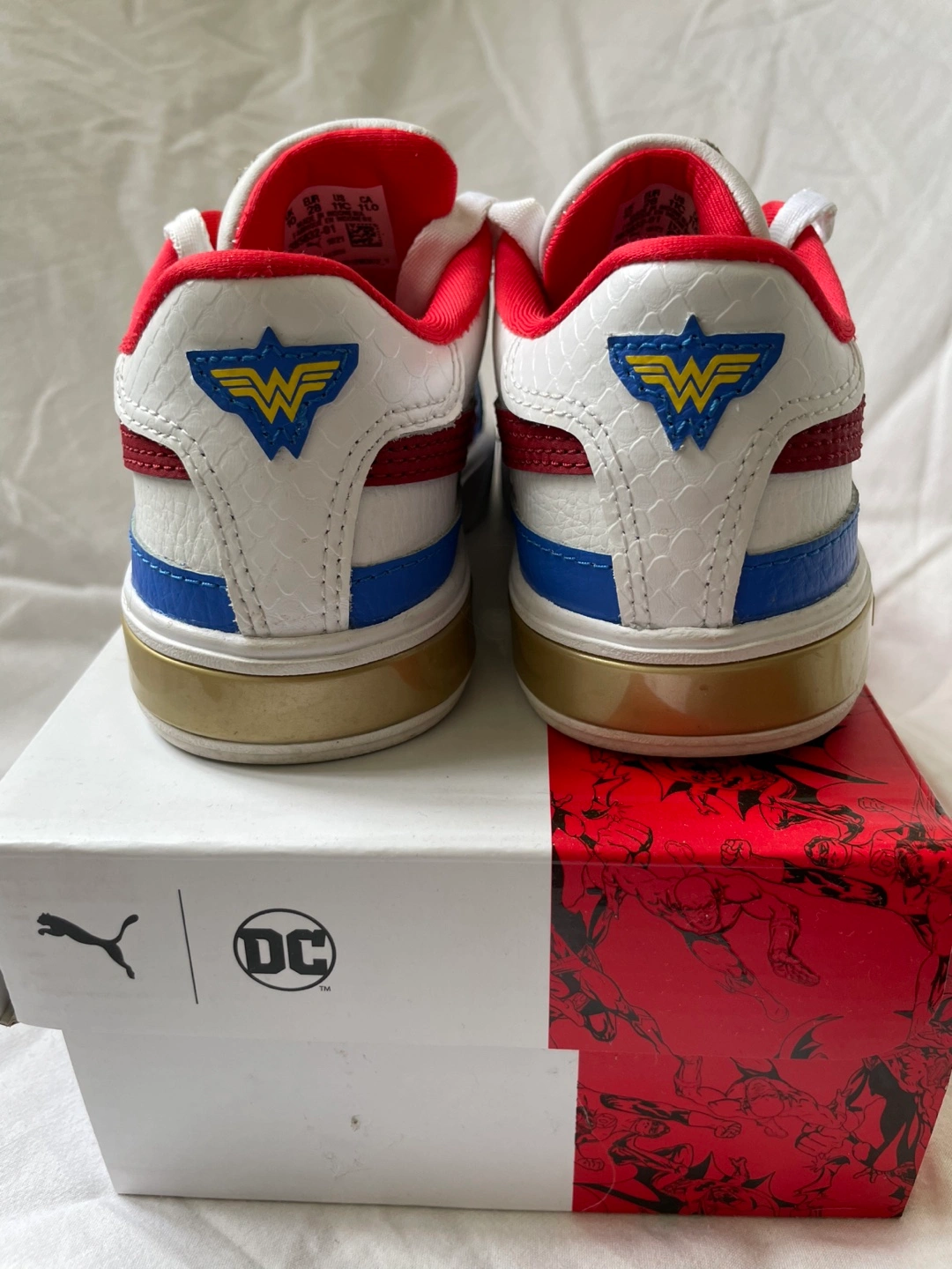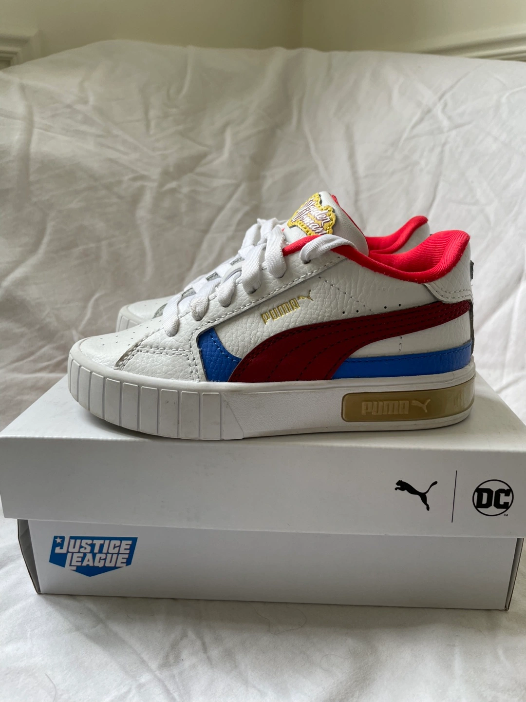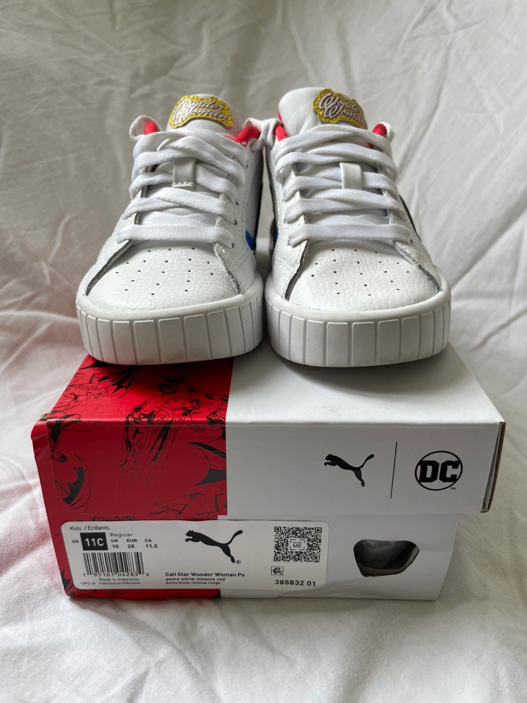 26These Puma Cali Star Wonder Woman sneakers edition are in great condition and come with the original box! They're a kids size 11C and feature a cool Wonder Woman design only worn a few times