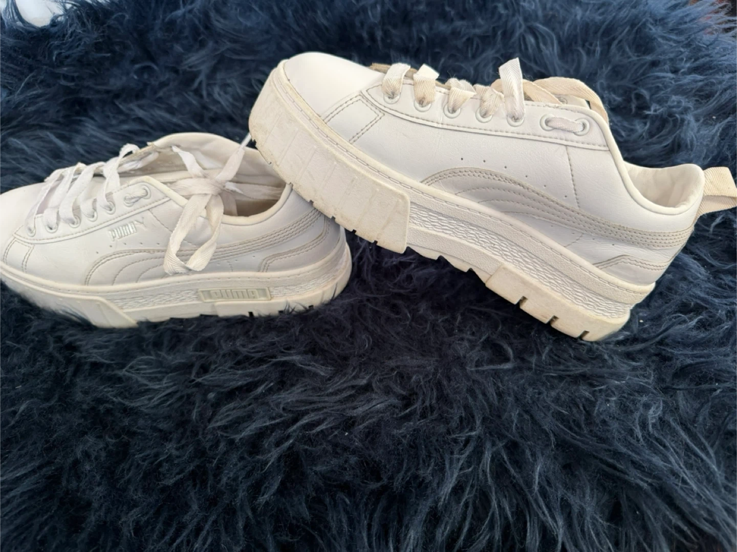 15Selling a pair of Puma Mayze Lth sneakers in white! They are a women's size 7 (US). The style code is 383684-01. Great everyday shoes!