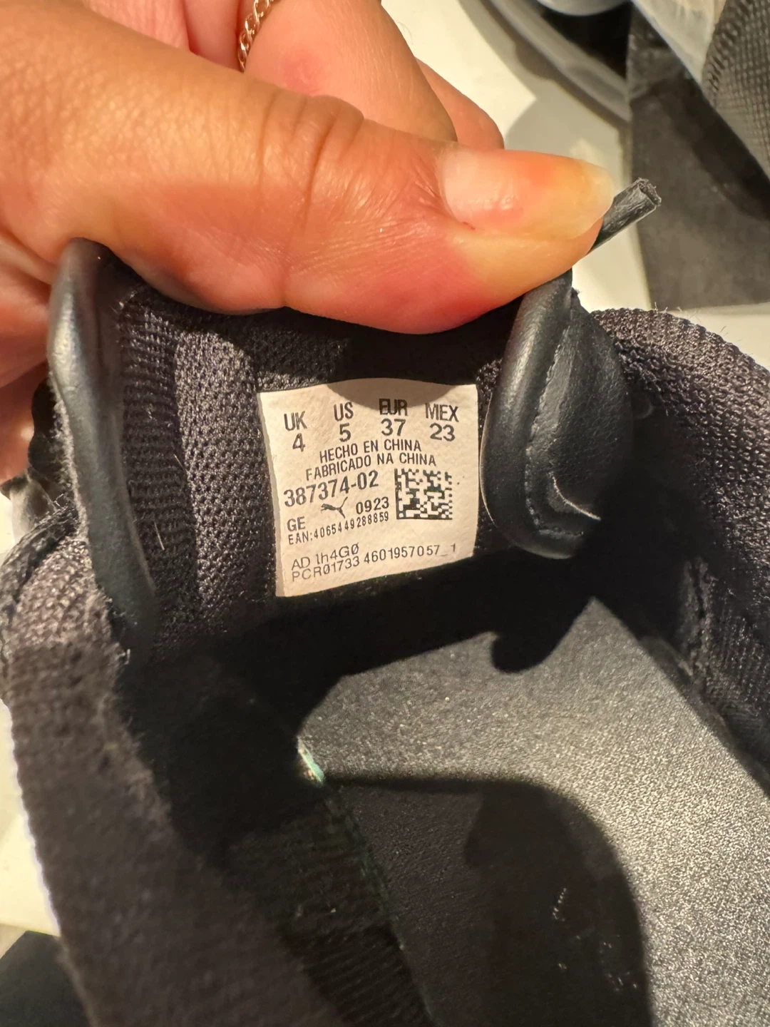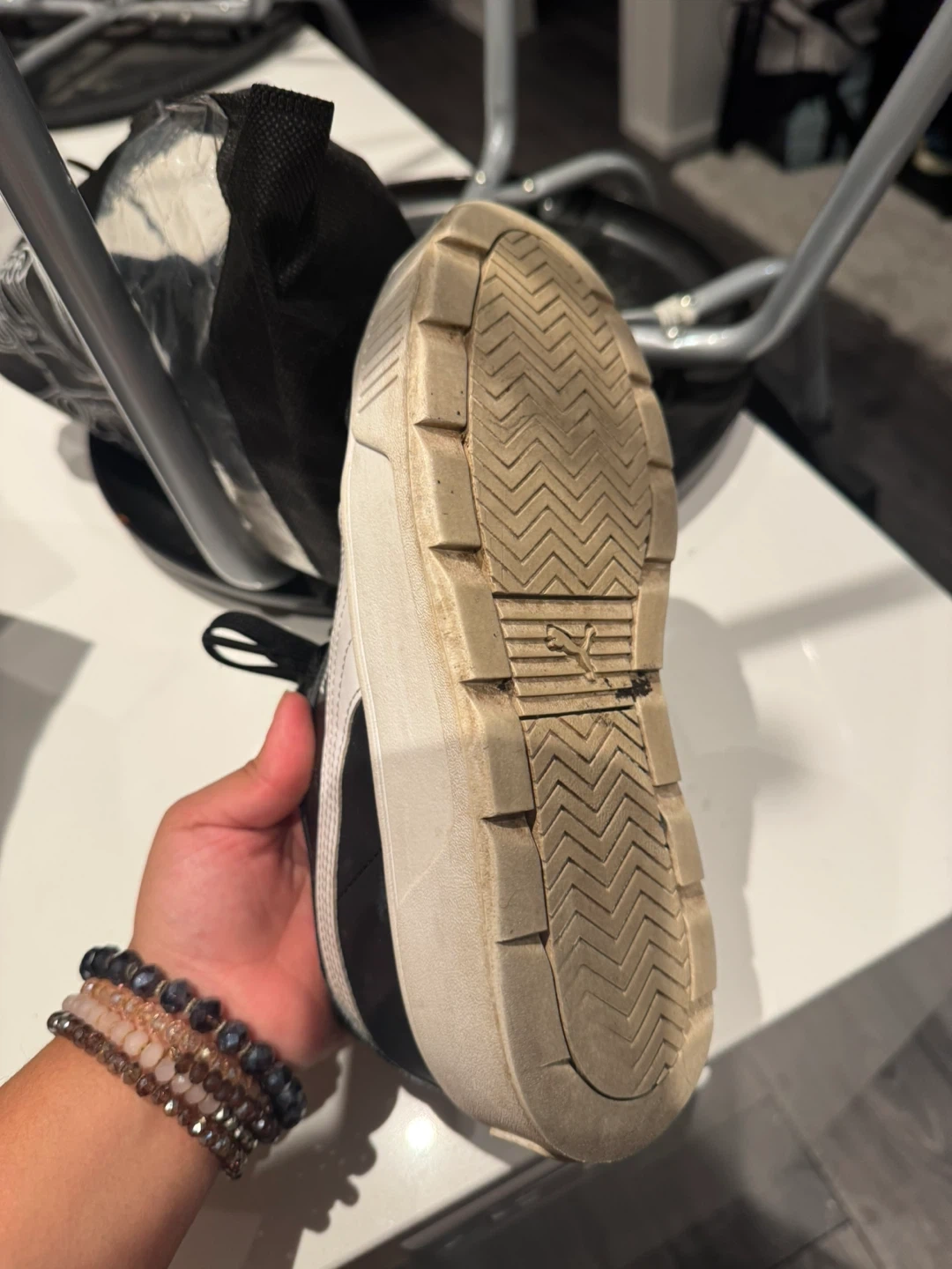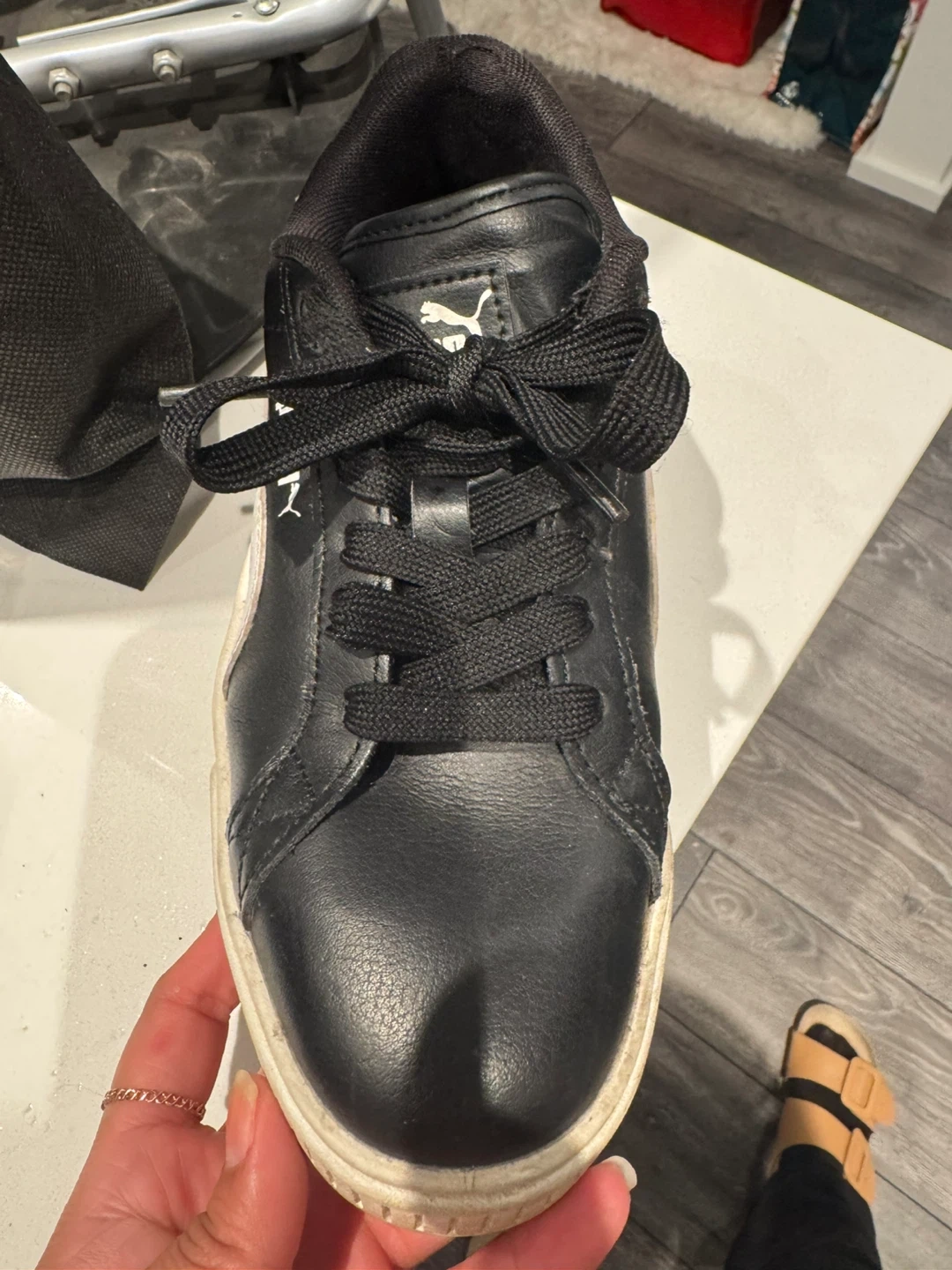 38Selling a pair of Puma platform sneakers in size 5. They are black with a white stripe and have a platform sole! They're in good condition and ready for a new home