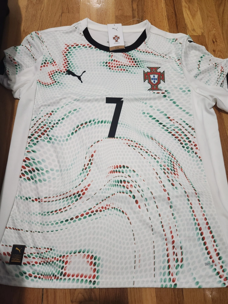 Selling a Puma Portugal Ronaldo #7 jersey! It's in new condition and ready for a new fan. The jersey features the iconic number 7 with Ronaldo's name on the back. Perfect for showing your support for Portugal's national team