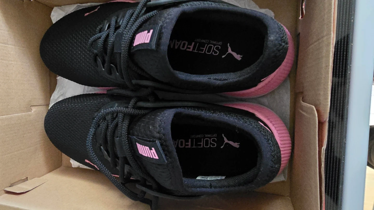 21Brand new Puma shoes-black with pink accents! They come in the original box!