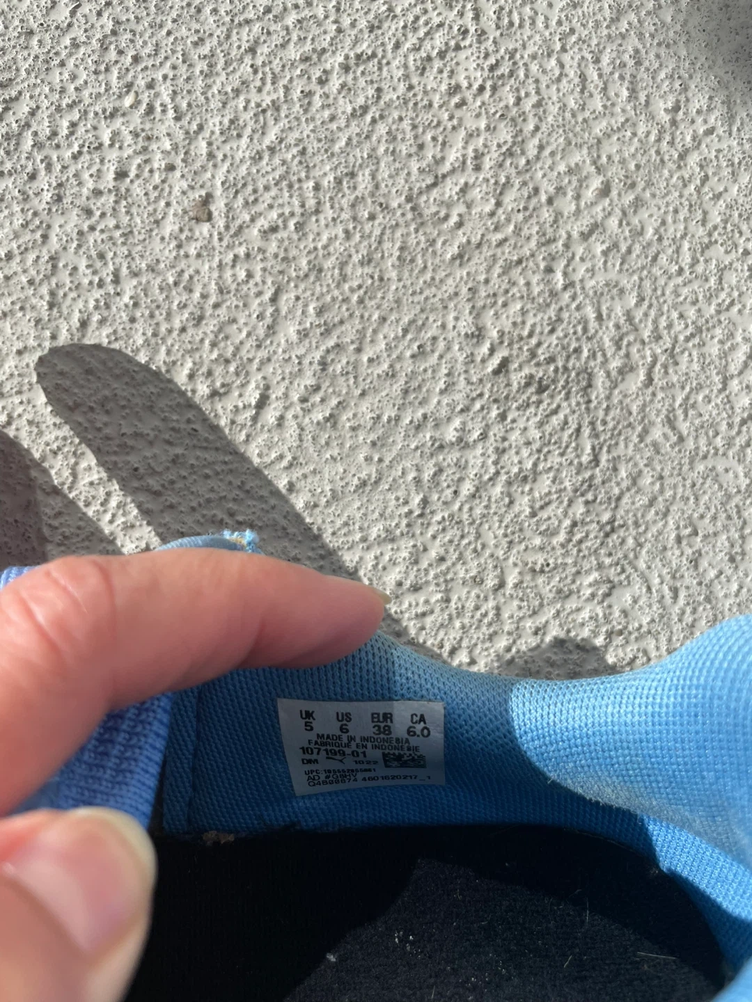 60Selling a pair of youth Puma soccer cleats in size US 6. They're a cool light blue colour with orange accents. Perfect for the young soccer/ruvby player!