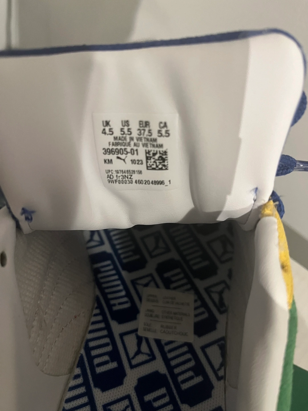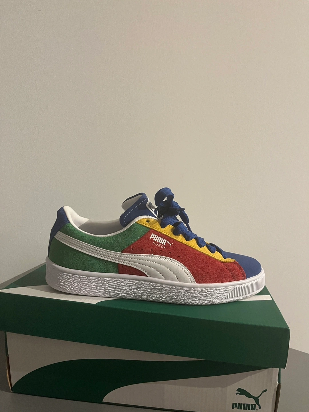Selling a pair of Puma Suede sneakers in a fun multi-colour design! These are a kids size 5.5 (US/CA). They're in great shape and come with the original box. Didn't use them