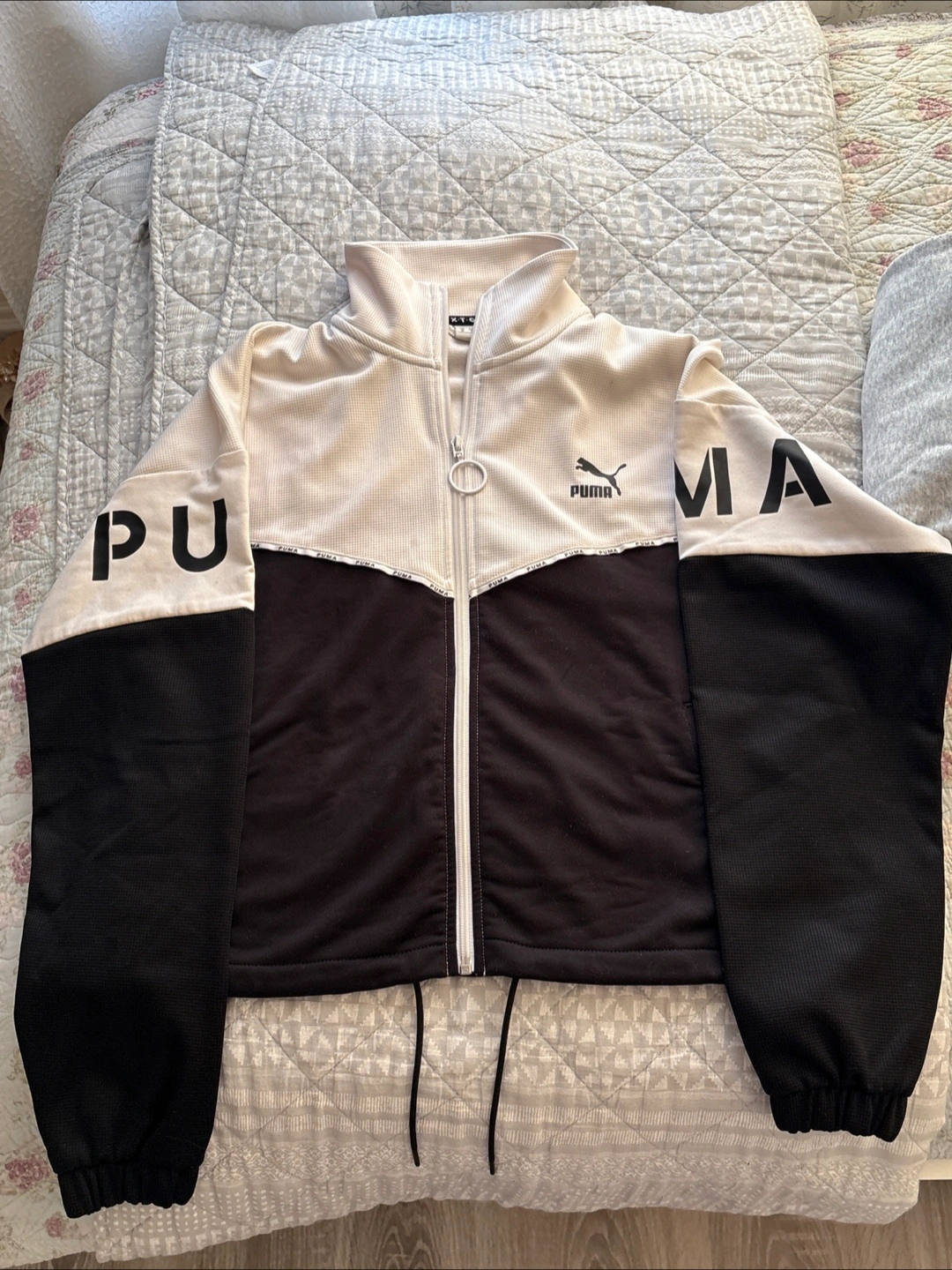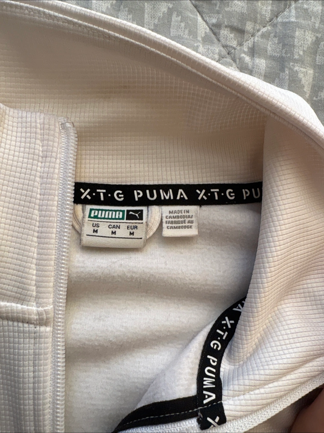 Selling a Puma X-TG track jacket in size medium! It's a stylish piece with a unique design. The jacket features the Puma logo and a comfortable fit. Perfect for workouts or casual wear!
