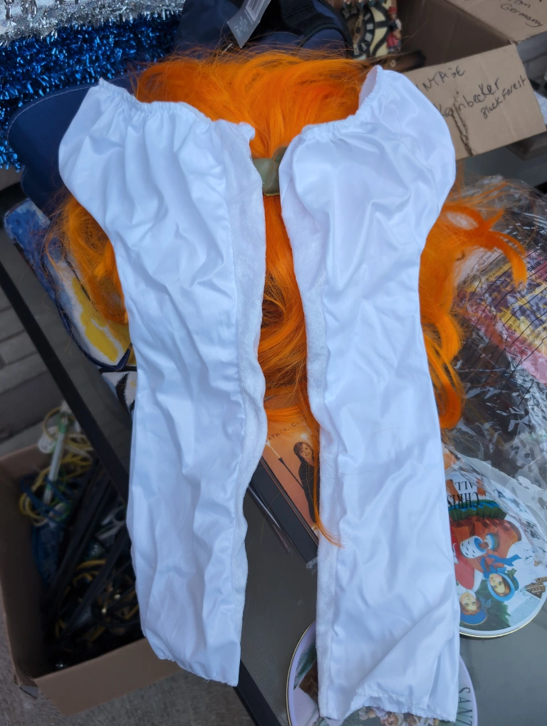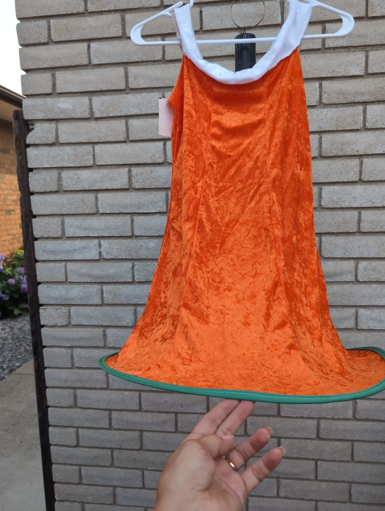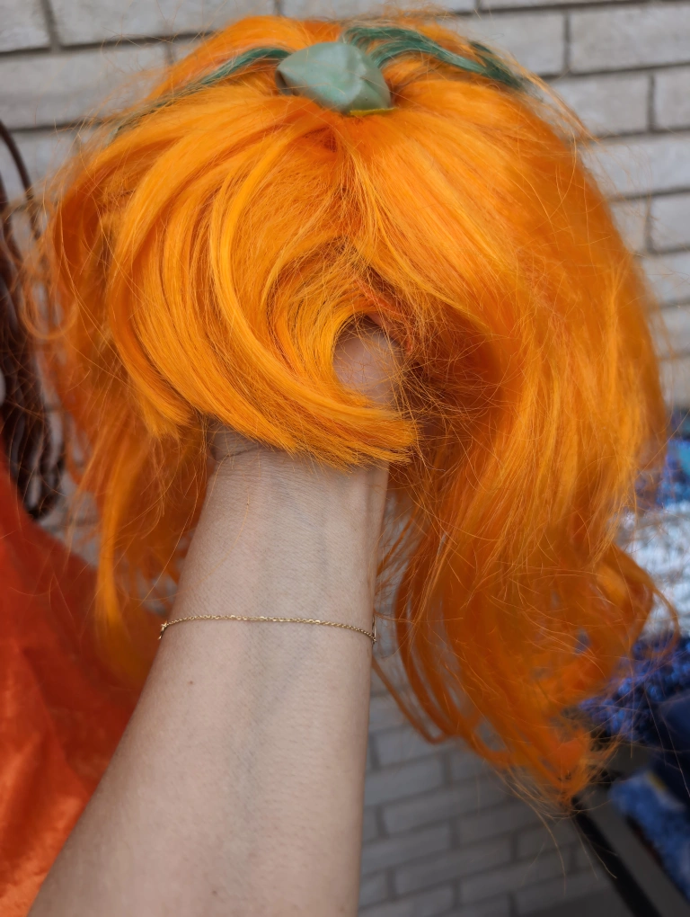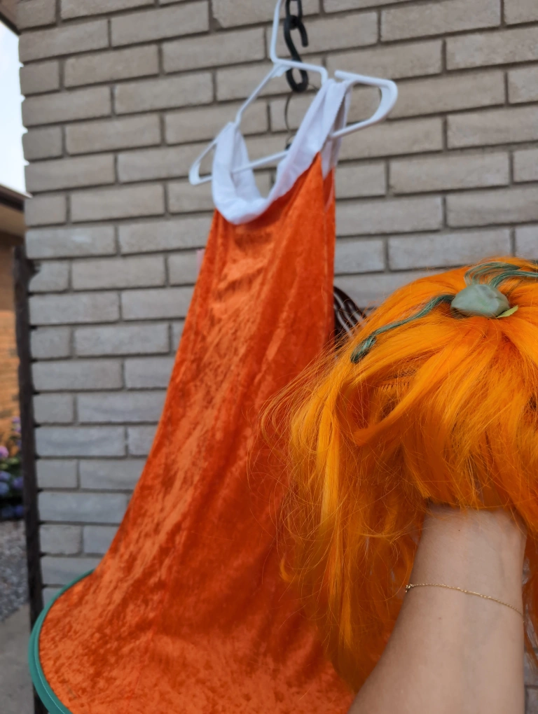 Get ready for Halloween with this fun pumpkin costume! It comes with a vibrant orange dress and a matching wig to complete the look. plus arm gloves. Perfect for parties or trick-or-treating! Can fit girls 10 -18 yrs old call 519-991-5620