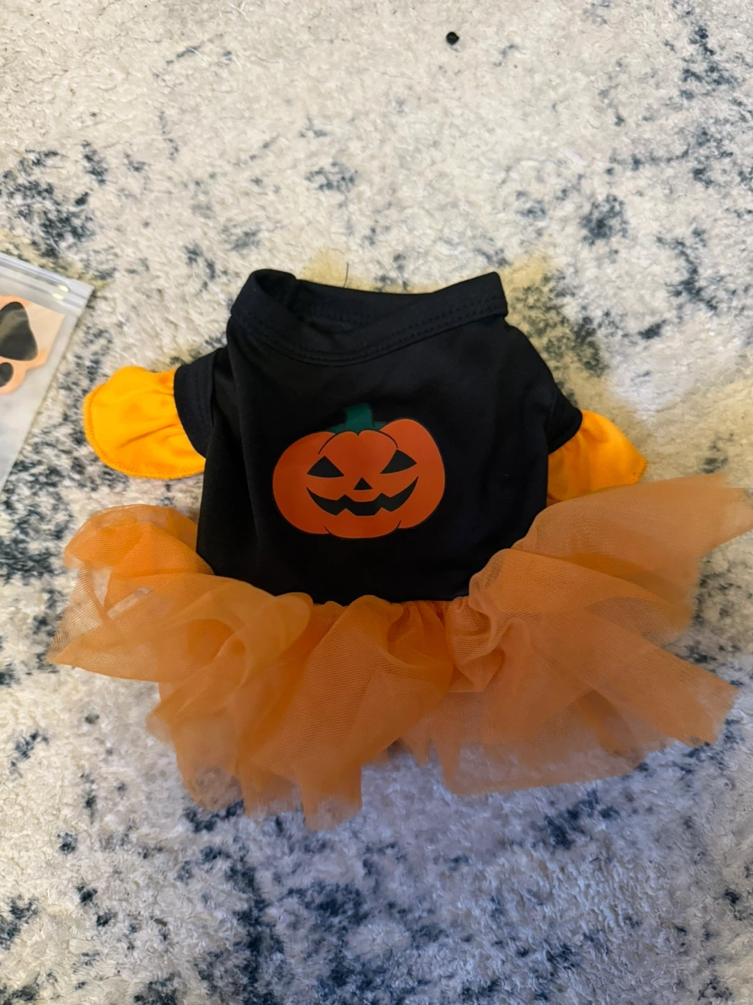 Get your furry friend ready for Halloween with this adorable pumpkin costume! It features a black top with a cute pumpkin design and an orange tutu. Perfect for small dogs or cats to join in on the spooky fun! Size (xxs) Negotiable! Never used before!