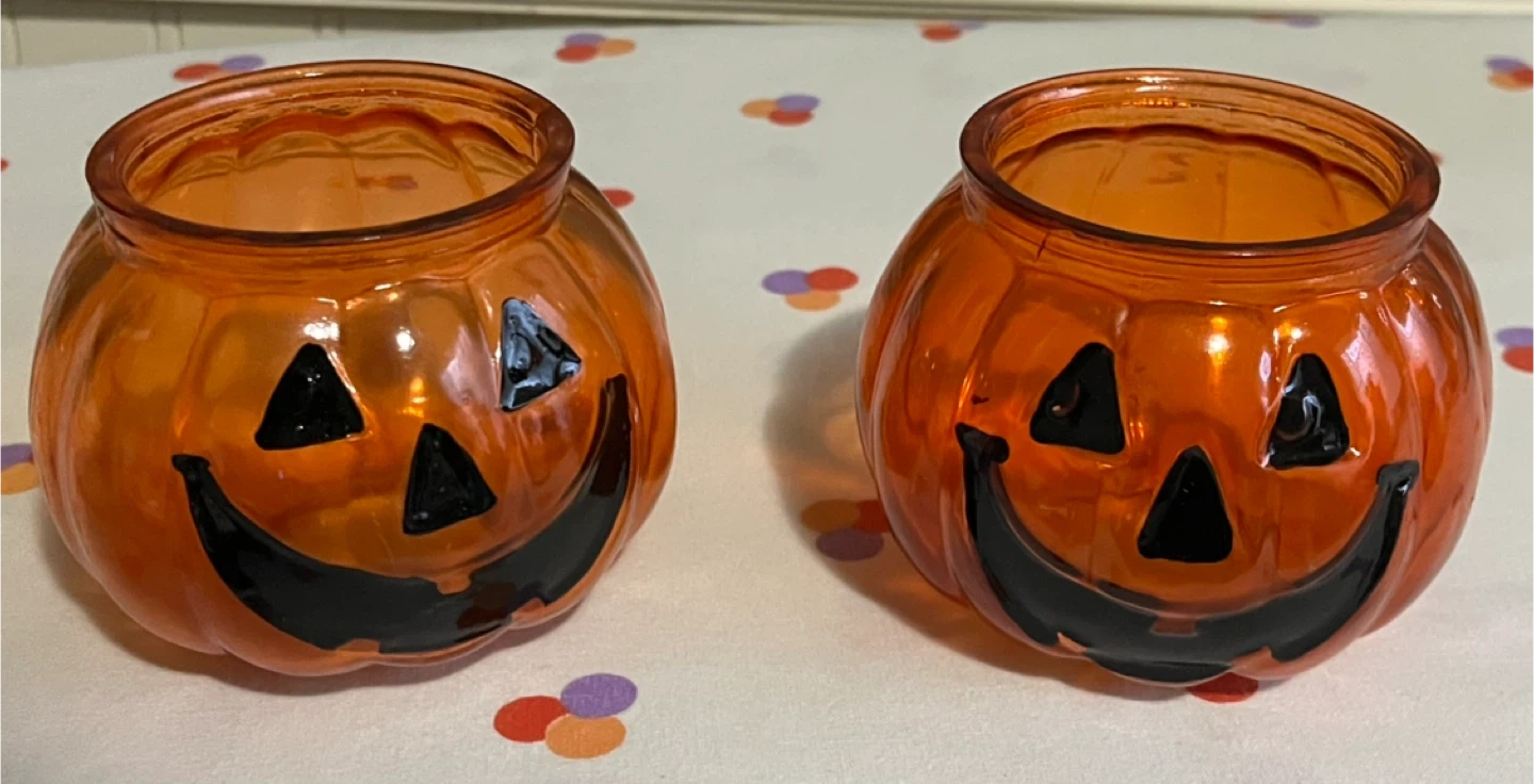 153Selling two cute pumpkin-shaped jars! They're perfect for Halloween decorations or just to add a bit of fun to your home