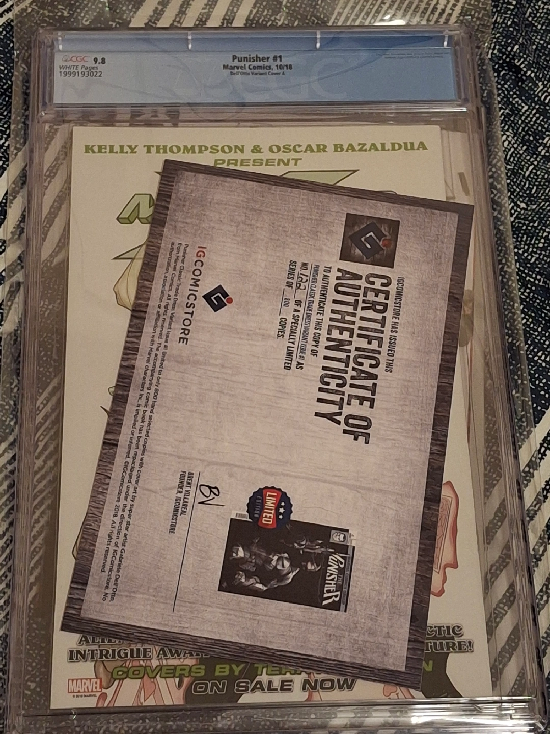 Selling Punisher #1 from Marvel Comics, graded CGC 9.8. A great addition to any comic book collection!