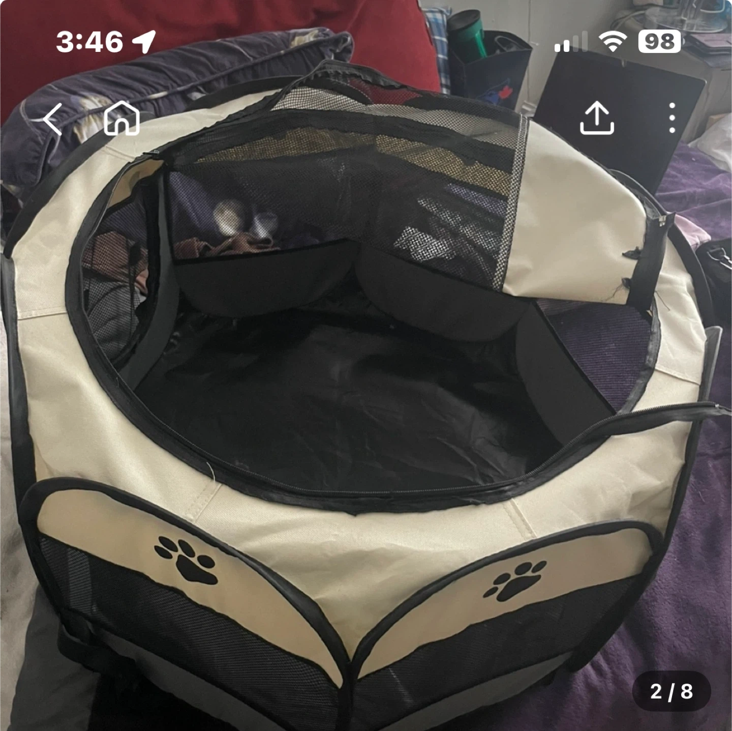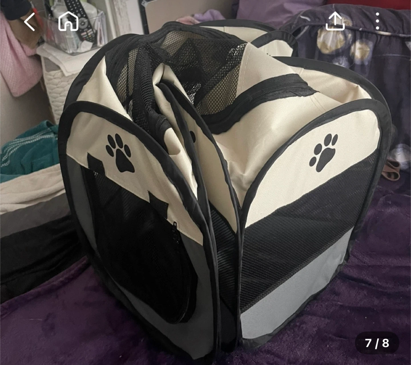 506Pet Carrier Sling. I’ve only used this once. Still in great condition. Pink/Rose Colour. Keep your furry friend close with this hands-free pet carrier sling from Elevated Endeavors! It's designed for small pets and features: - Adjustable buckle - Zipper closure - Breathable mesh material - Phone pocket - Safety hook - Adjustable neck strap ****PLUS**** Selling a set of dog clothes and a harness. The set includes a white t-shirt with a 'Happy Birthday' design and paw prints, a yellow fuzzy vest, and a pink harness with a heart and bone pattern. Great for keeping your furry friend stylish and safe on walks! For Puppy or small dog. ***PLUS*** Selling a portable pet playpen! It's in great shape and has cute paw print designs on the sides. Perfect for keeping your furry friend safe and contained, whether you're at home or on the go. Regular $31.99 Amazon Has a tear on the zipper part but can be easily sewed up & fix. Other than that great condition for a new puppy. 🐶 GREAT PUPPY BUNDLE 🐶 *GREAT DEAL* Lobby Pick Up!