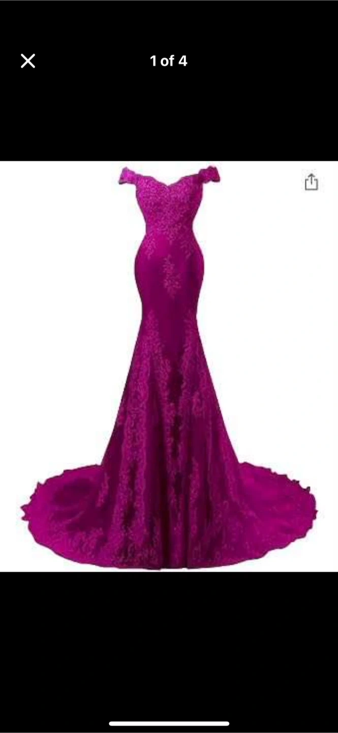 10Beautiful purple lace mermaid gown, perfect for a special occasion! The intricate lace detailing and flattering silhouette make it a stunning choice for a formal event or wedding. It's in great condition and ready to make someone feel fabulous