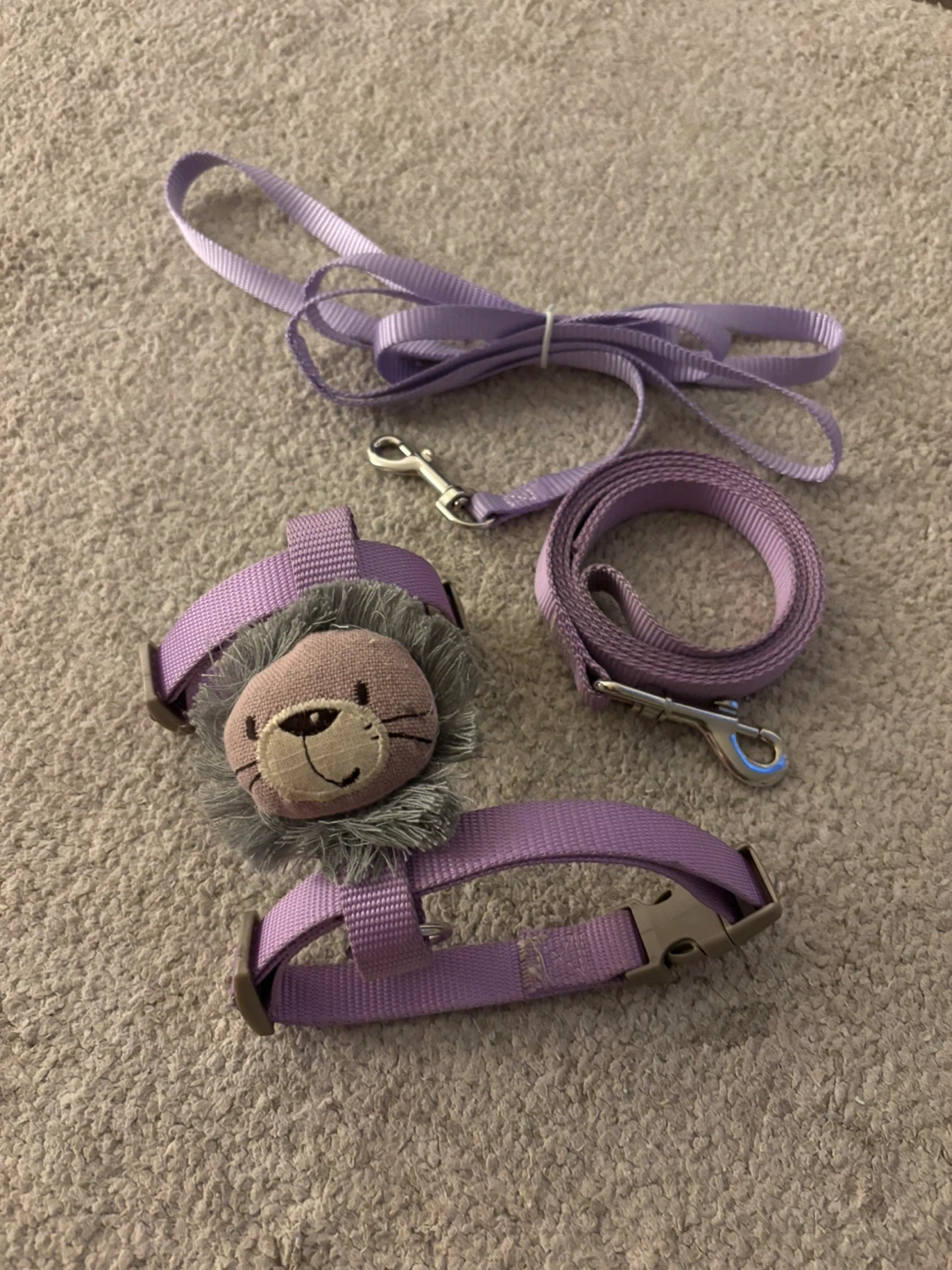 140Selling a cute purple cat collar and leash set! The collar features an adorable lion design. Perfect for adding some fun to your cat's outdoor adventures