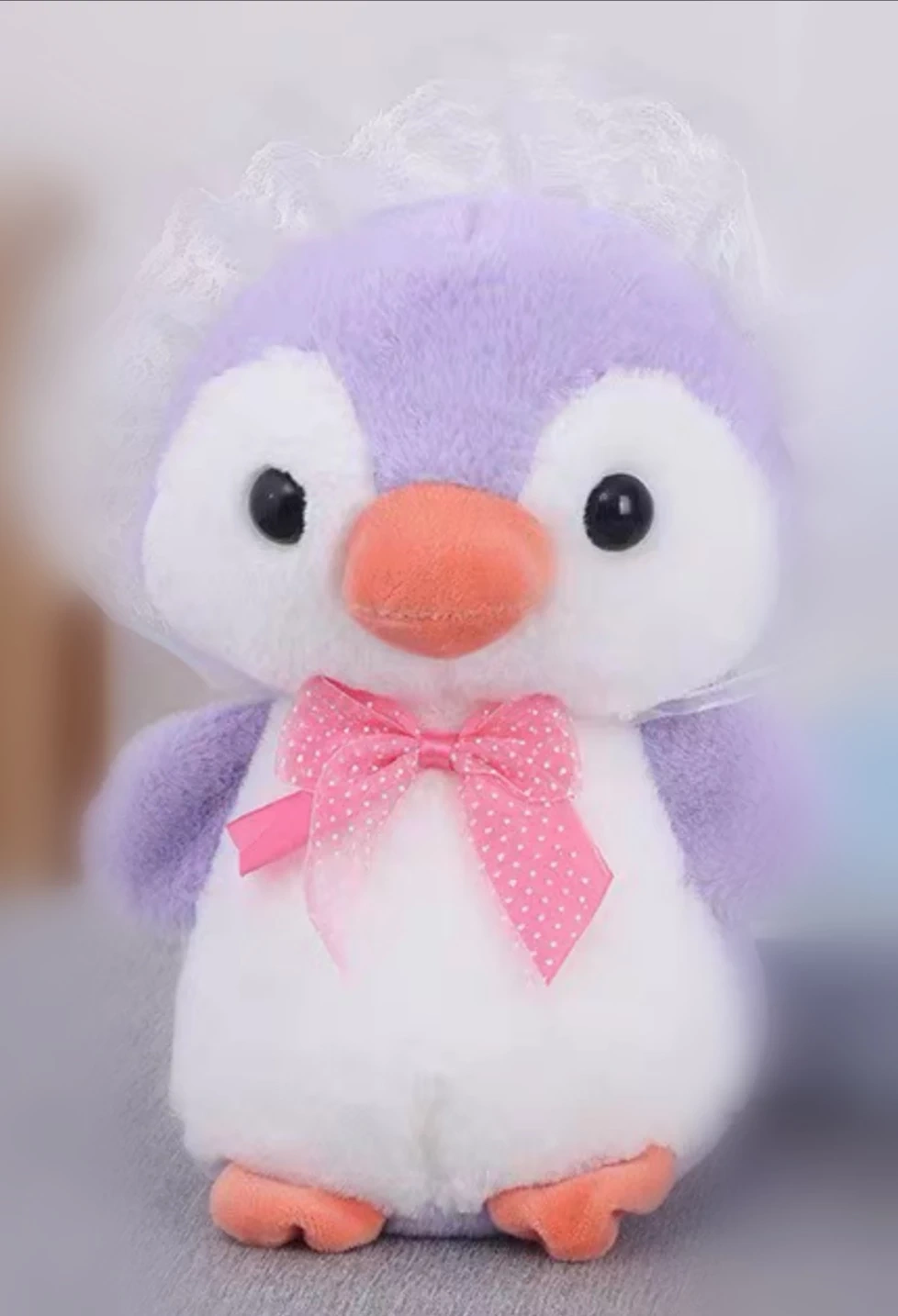36A super cute purple and white penguin plushie! It has a sweet little pink bow with white polka dots. It's in great condition and ready for a new home!