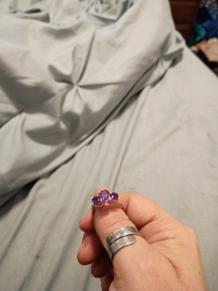 A lovely. Gemstone Three-Stone Amethyst Sterling Silver Fine ring featuring a purple stone, perfect for adding a touch of colour to your outfit size 7 pick up only