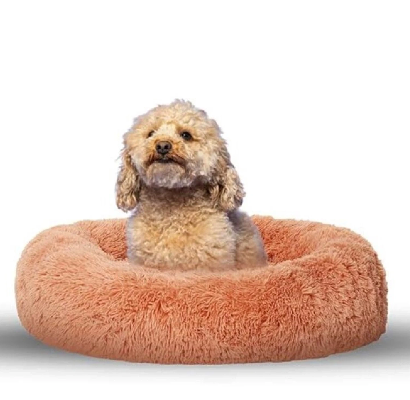 Purple Tails Donut Dog Bed – Premium Faux Fur Dog Bed for Small, Medium, Large Dogs – 30 inches Cozy and Comfortable Calming Dog Bed with Non-Slip Bottom – Ultra-Fluffy Pet Bed Includes Dog Ball Toy (Medium, Peach)