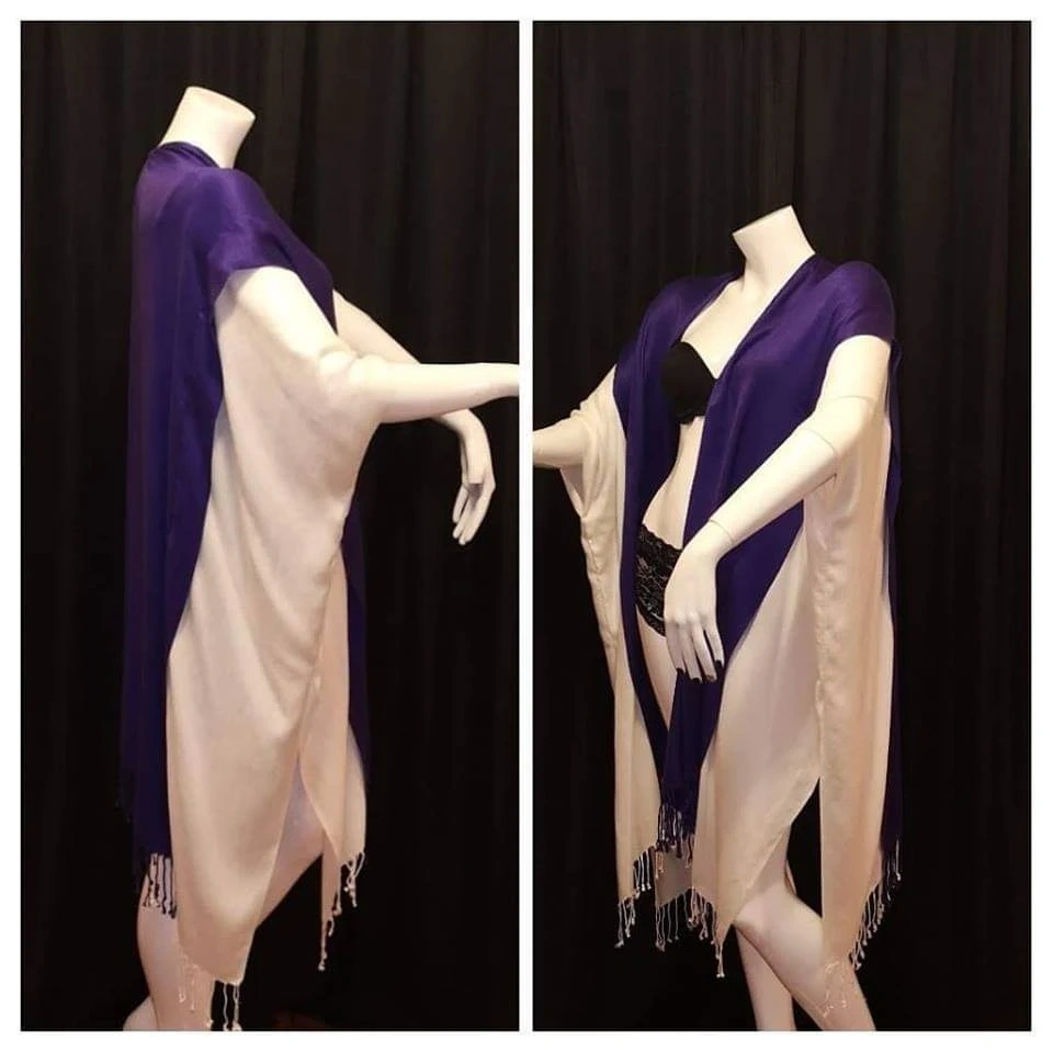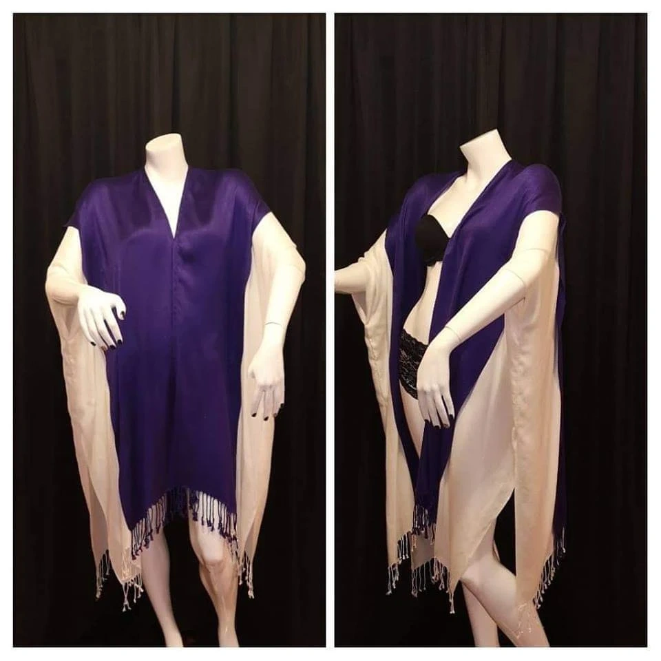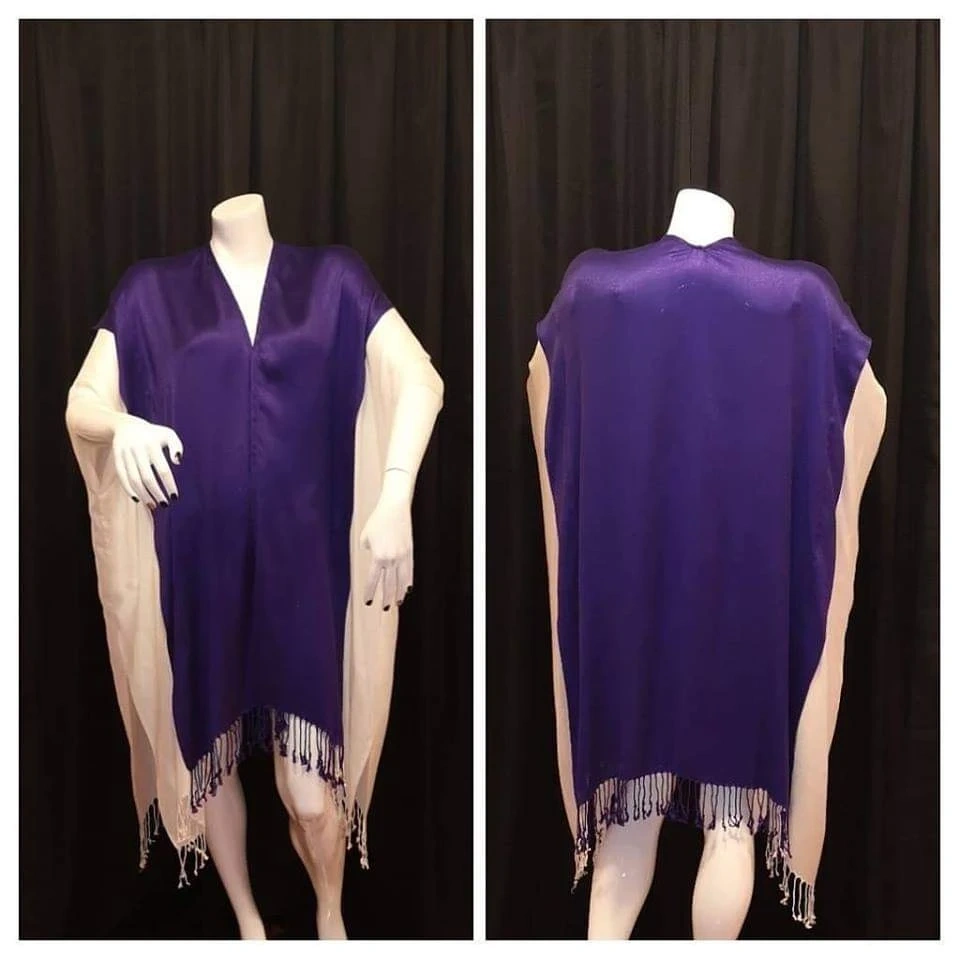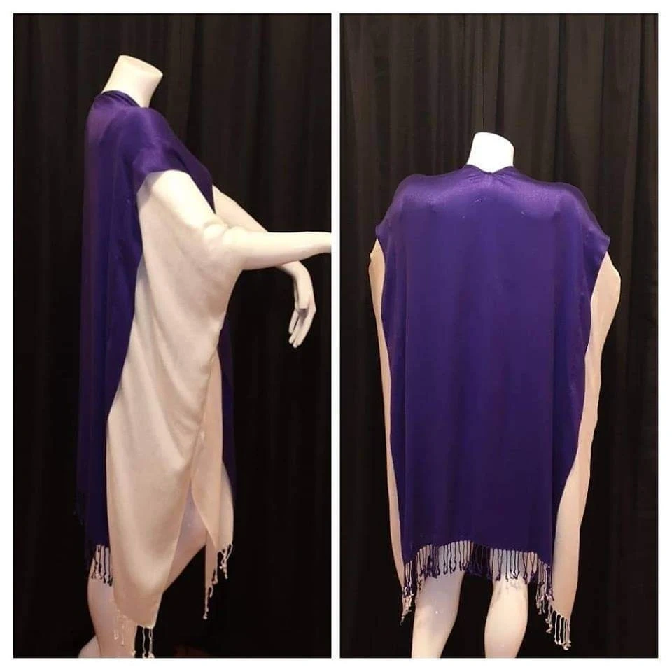 Selling a lovely LizzardWear Slip-Over, in purple and white. It's handmade and ready to add a touch of elegance to your wardrobe! The poncho features a stylish design with fringe detailing, perfect for layering or wearing on its own.