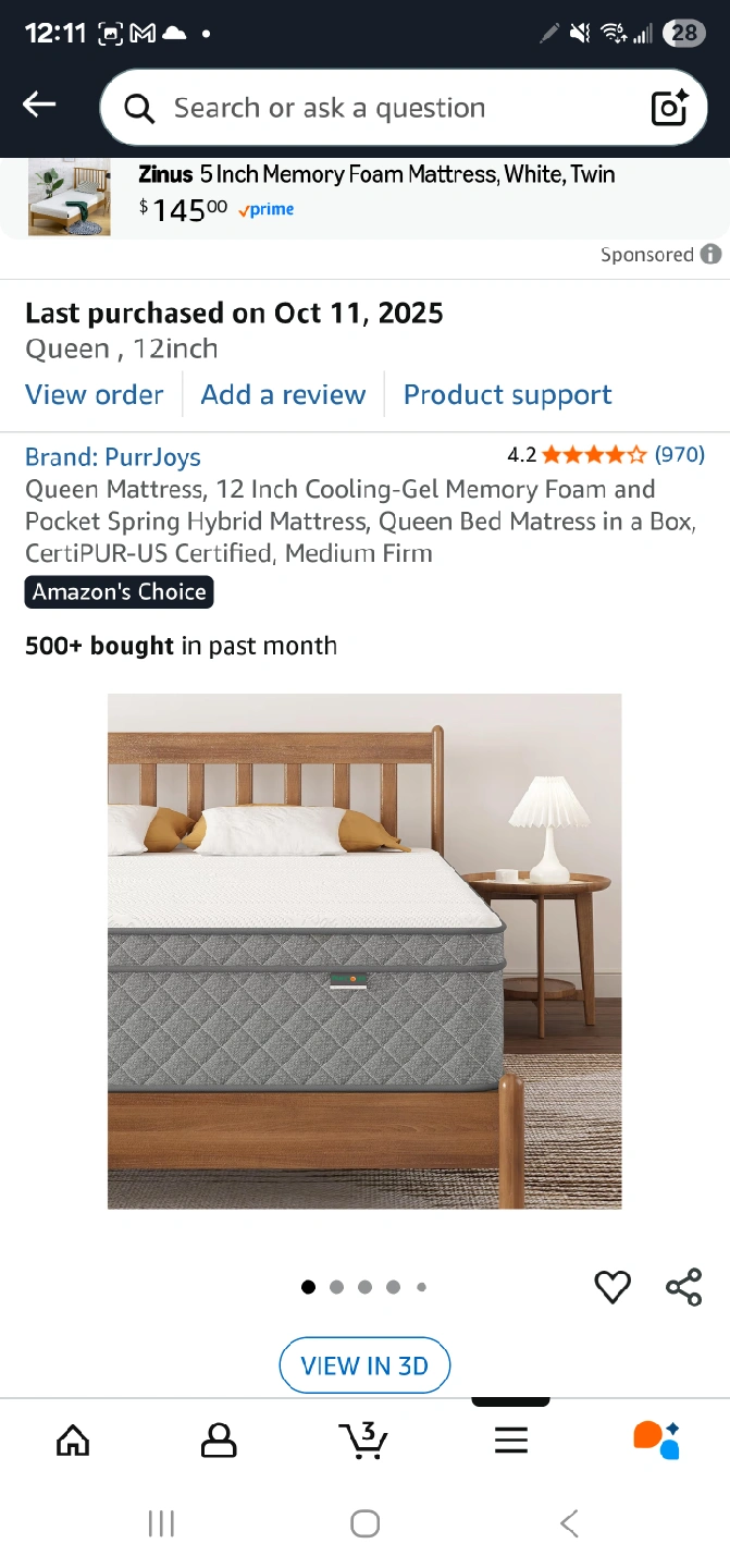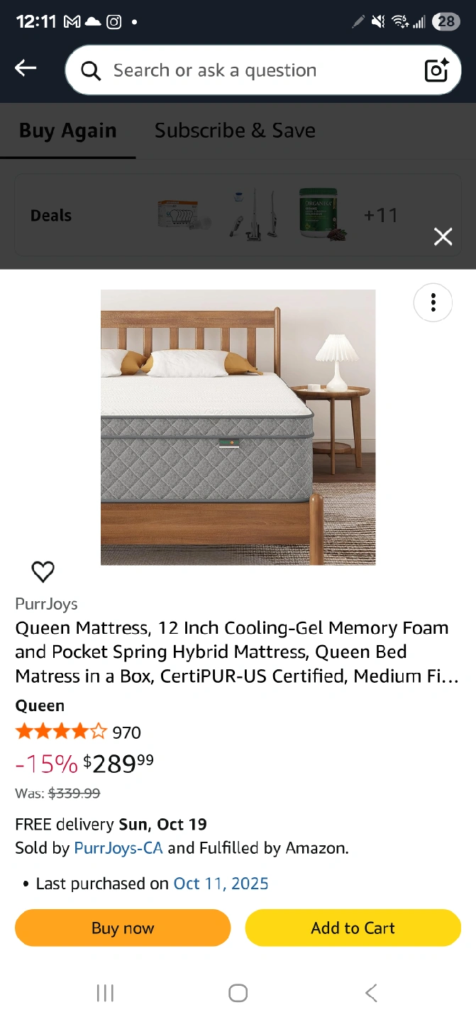 10Selling a Purrjoys 12-inch queen-size cooling-gel memory foam and pocket spring hybrid mattress. It's CertiPUR-US certified and comes in its original box. Originally bought for $289.99. It's a medium-firm mattress that offers great support and comfort