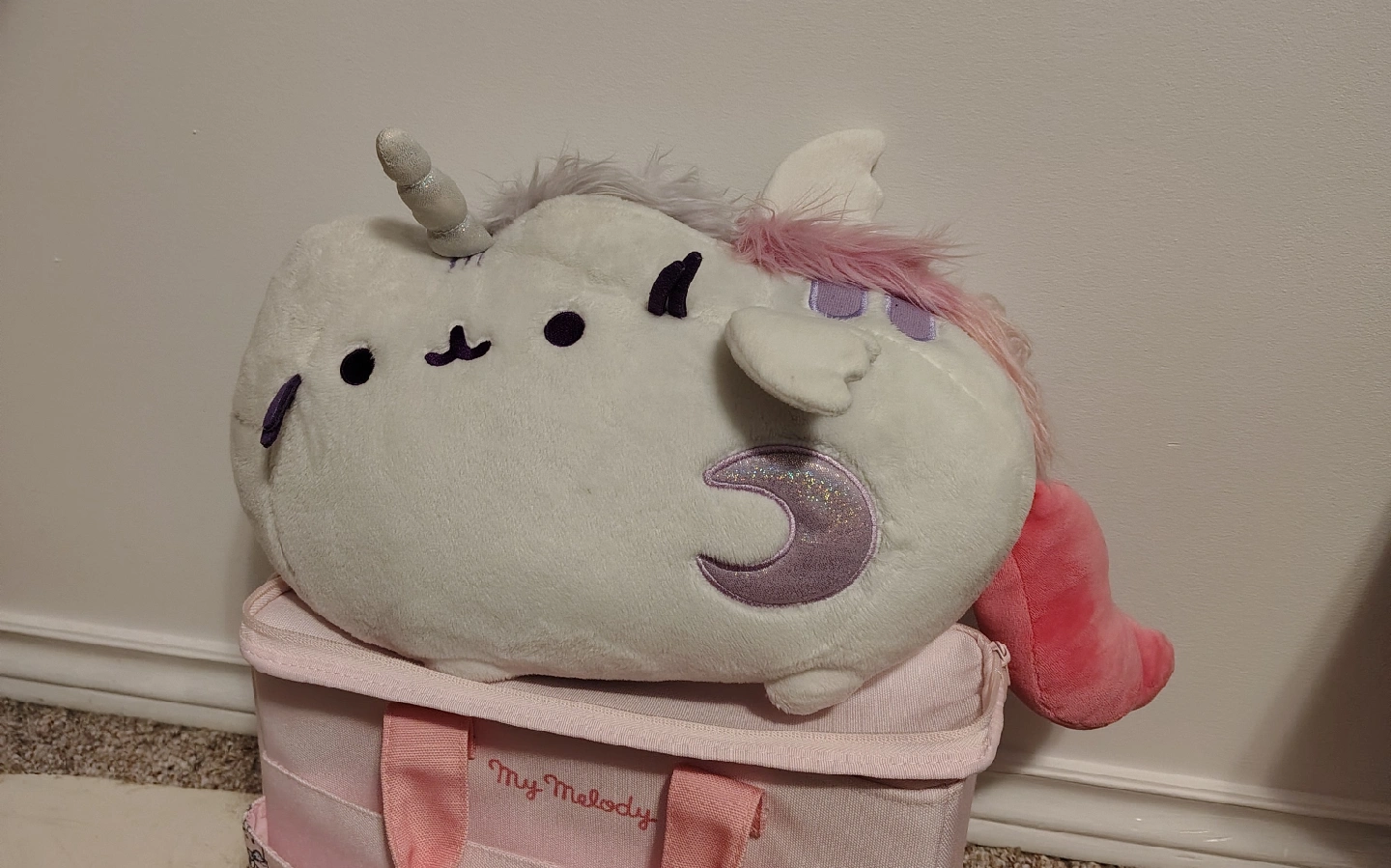 Selling a cute Pusheen unicorn plush! It's in great condition and ready for a new home. It has a sparkly horn and a pink tail. It's super soft and cuddly, makes noises and battery operated!