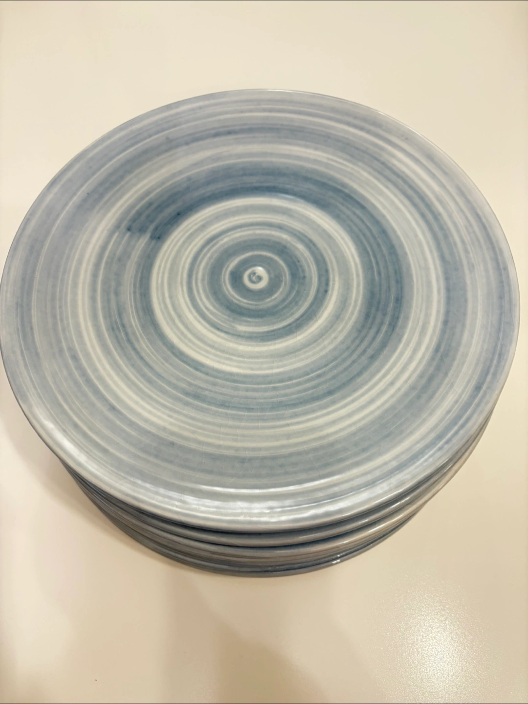 Selling a set of 8 beautiful dinner plates. They are hand made in Portugal and are dishwasher and microwave safe. The plates have a lovely blue and white swirl pattern all in great condition no damage at all