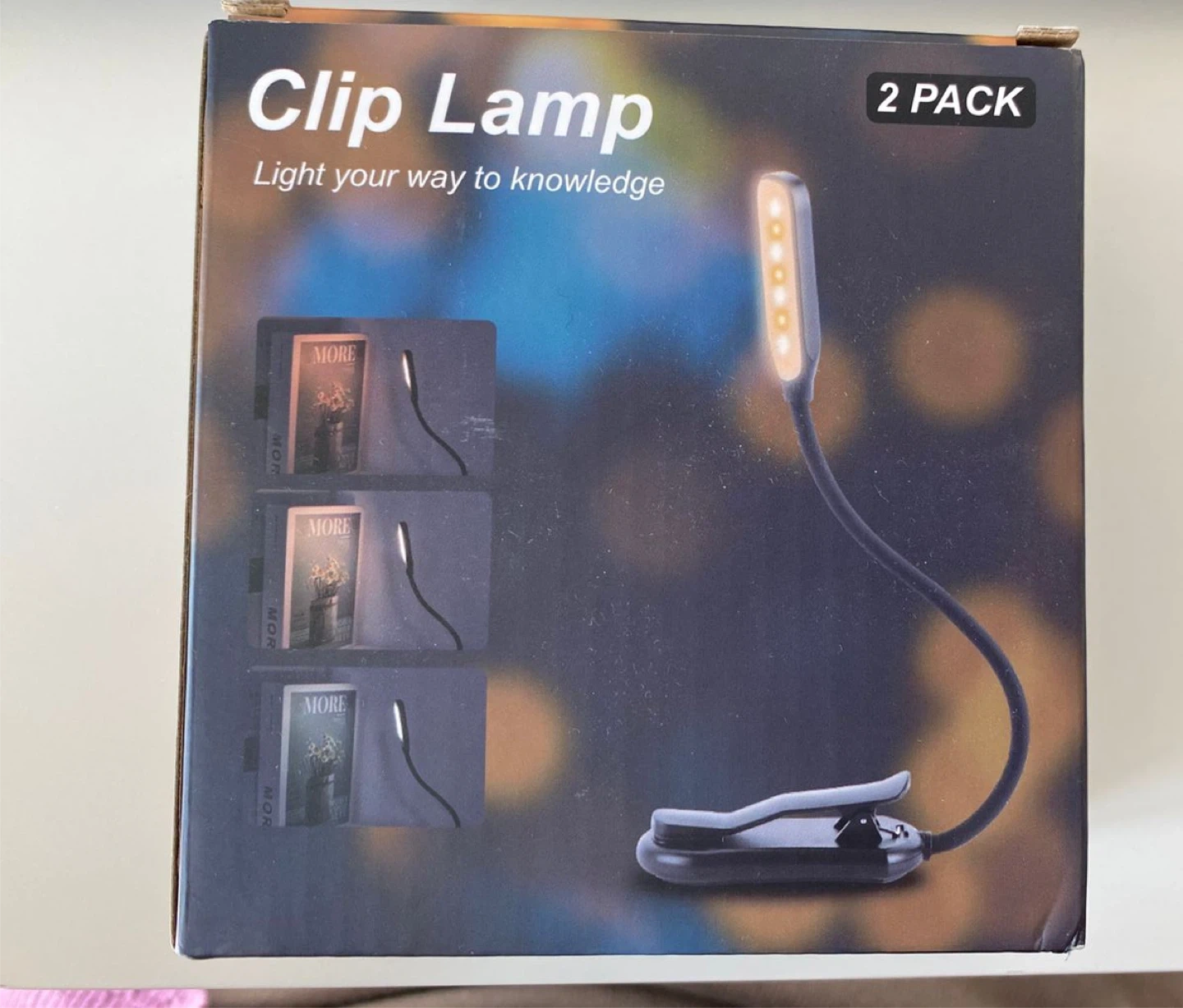 This is a one clip lamp , perfect for reading. The lamp has a flexible gooseneck and a sturdy clip. These lights provide illumination for your books.