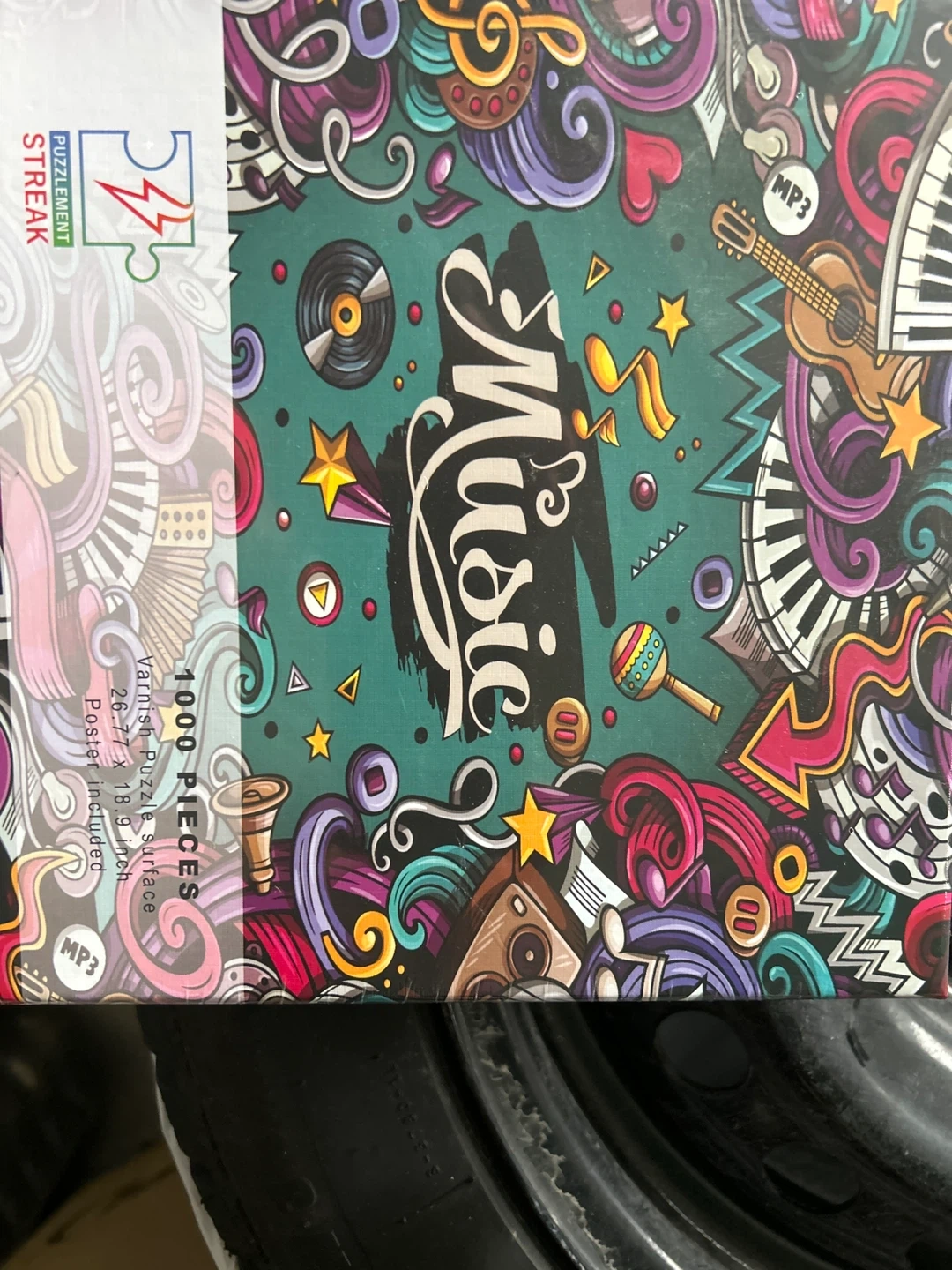 10Selling a Puzzlement Streak 'Music' themed puzzle! It has 1000 pieces and features a varnish puzzle surface. The assembled puzzle measures 26.77 x 18.9 inches. A poster is included to help with assembly