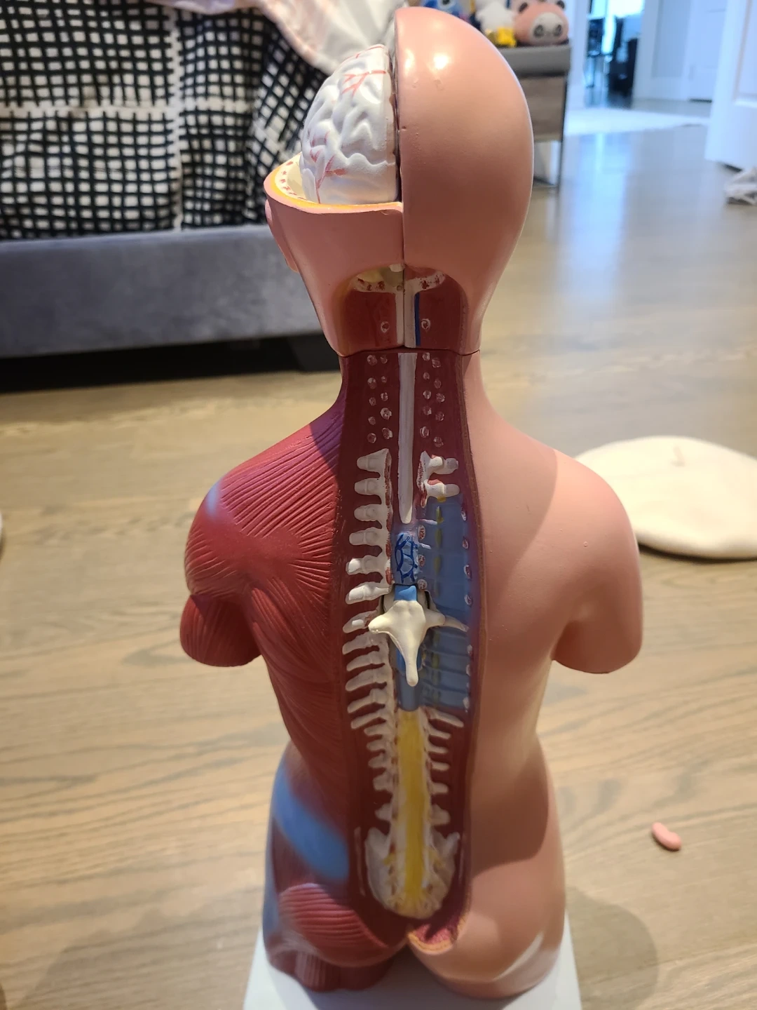 Selling a human torso anatomy model. It's a great for learning about the human body. It comes in multiple pieces that can be taken apart and reassembled to study the different organs and systems
