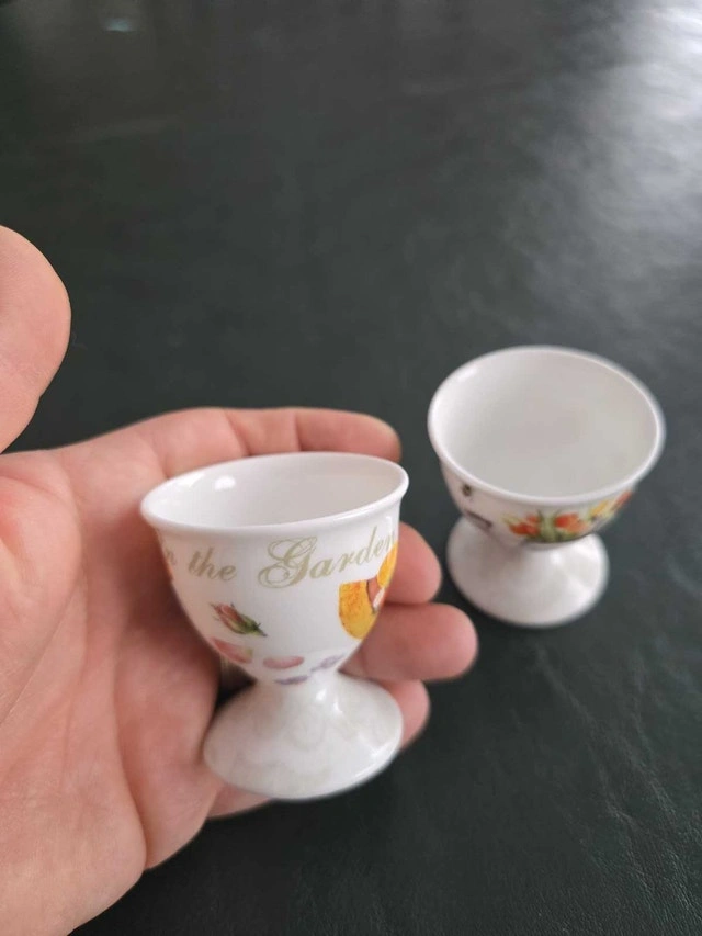Add a touch of vintage charm to your breakfast table with this pair of delightful floral design egg cups. These gently used cups are in good condition and ready to cradle your soft-boiled eggs in style. The delicate floral patterns bring a touch of spring to any morning. A Kijiji search shows similar items selling for around $10-$20, so I've priced them fairly for their quality and design. They're just waiting to hop into a new home! P.S. If the ad is up, they're available!