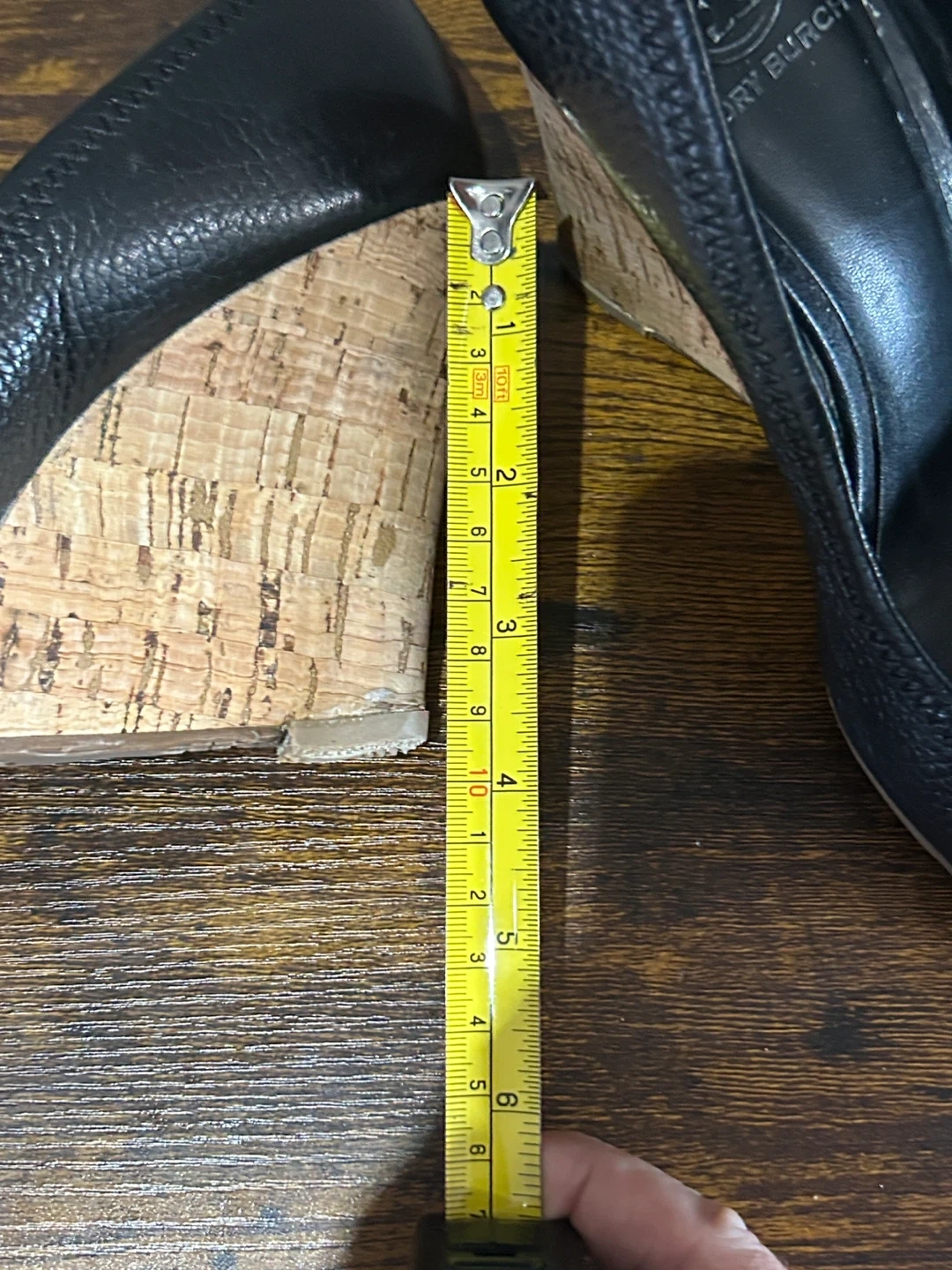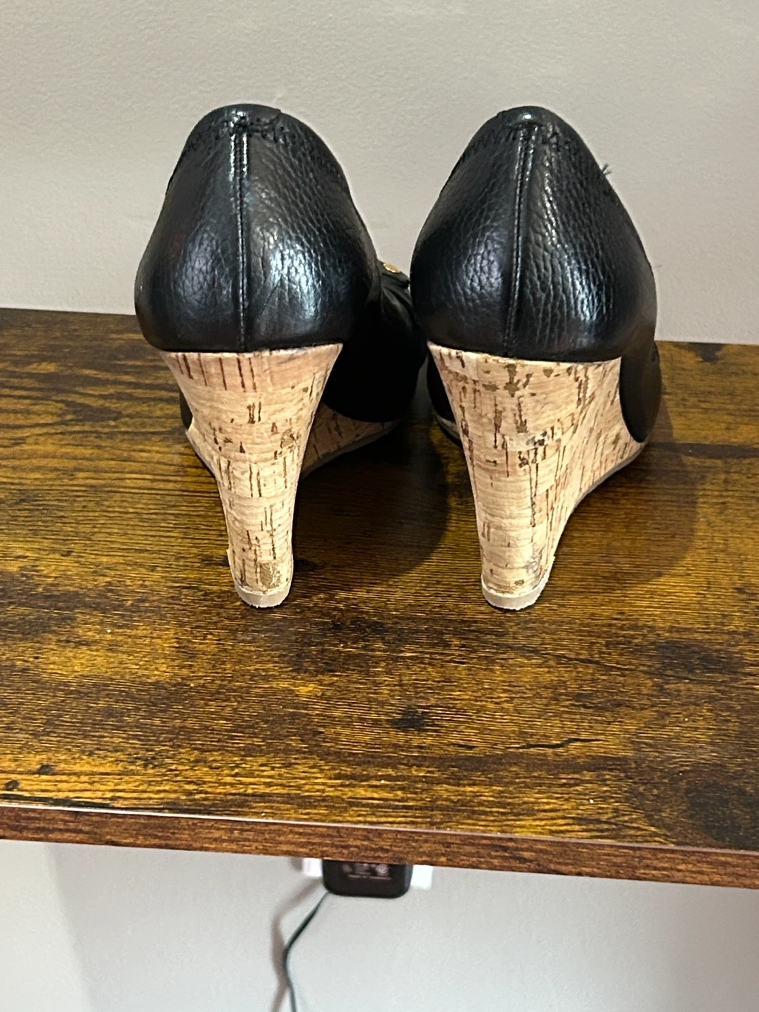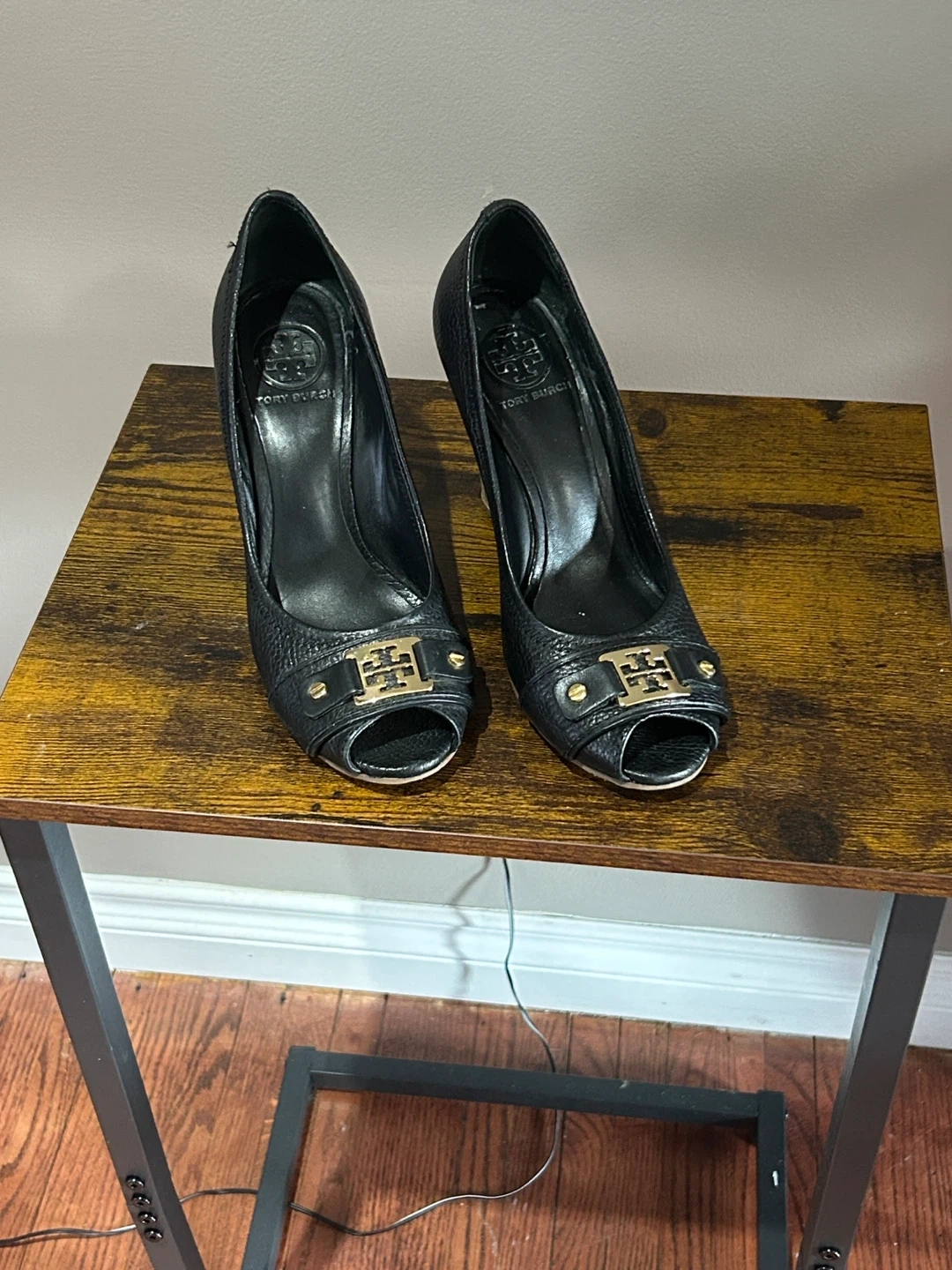 Tory Burch Black Leather Peep-Toe Wedge Heels Size 8M