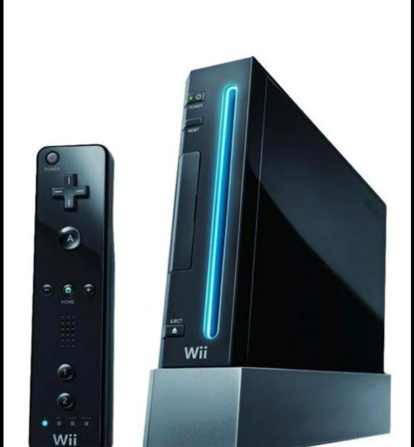 Black Nintendo Wii console with a Wii Remote. Includes games (Just Dance, Just Dance 2, Just Dance 3, Just Dance 4, and Just Dance, Harley Pasternak's Hollywood Party) and relevant cords apart from one HDMI cord - all other wires available