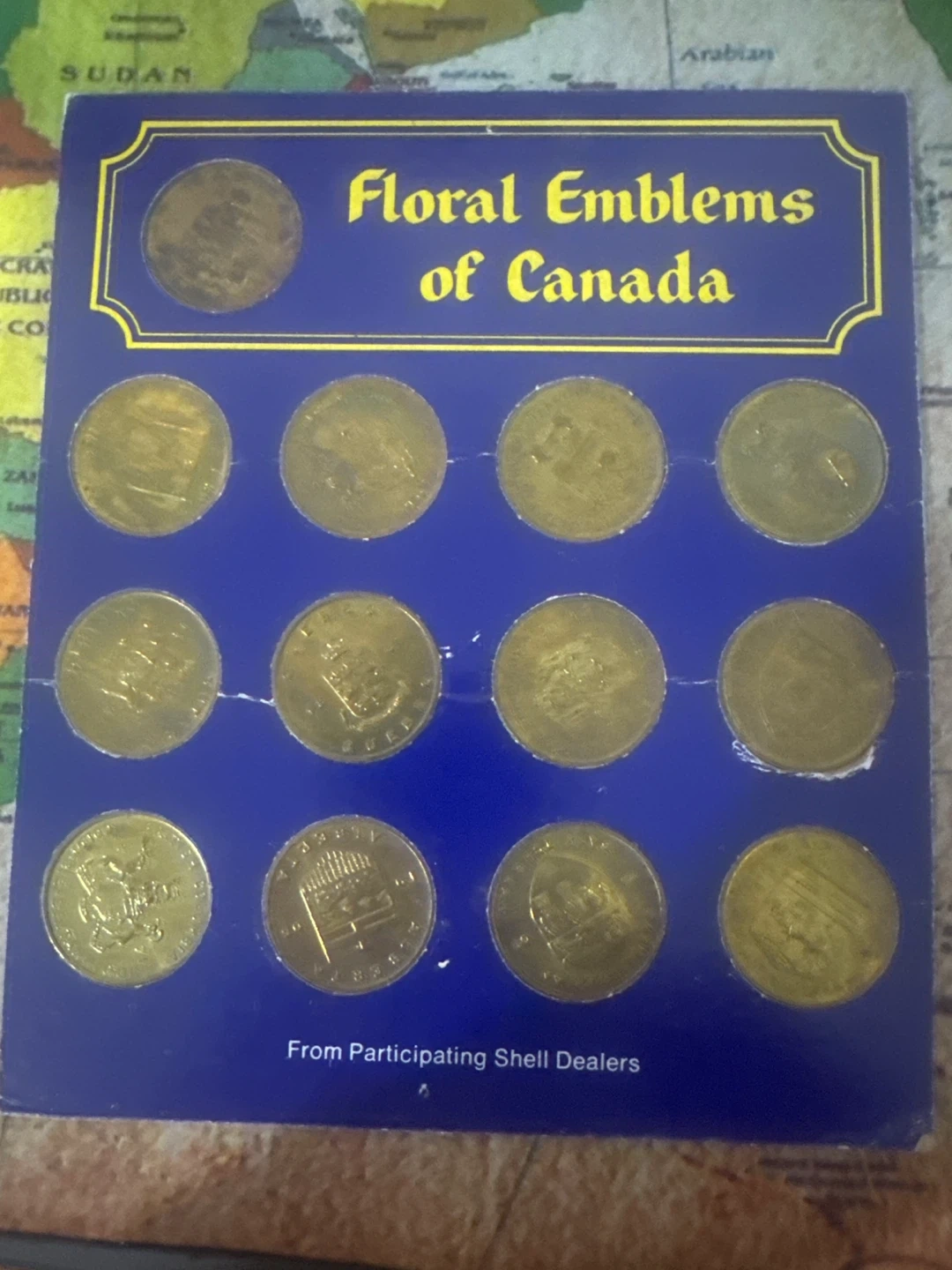 This set features two collectible coin cards: Floral Emblems of Canada and Coats of Arms of Canada. Each card displays twelve distinct coins, presented by participating Shell Dealers. A great addition for collectors interested in Canadian heritage and numismatics!