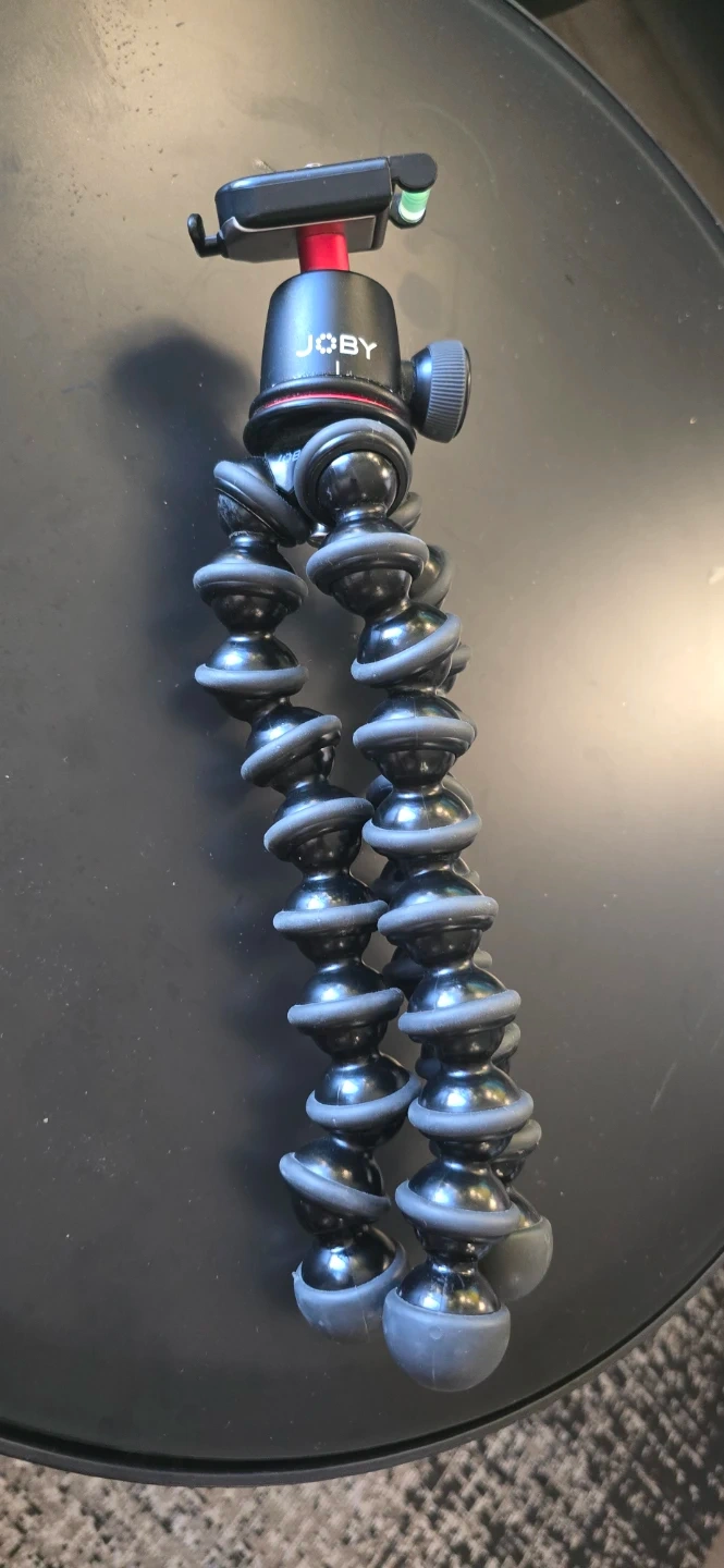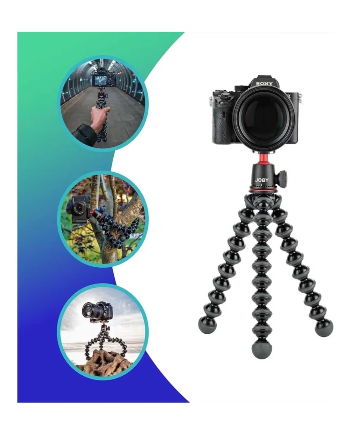 This is a Joby Gorillapod 3K Kit flexible tripod for cameras. It's black and has bendy legs for versatile positioning. Includes a quick-release plate.