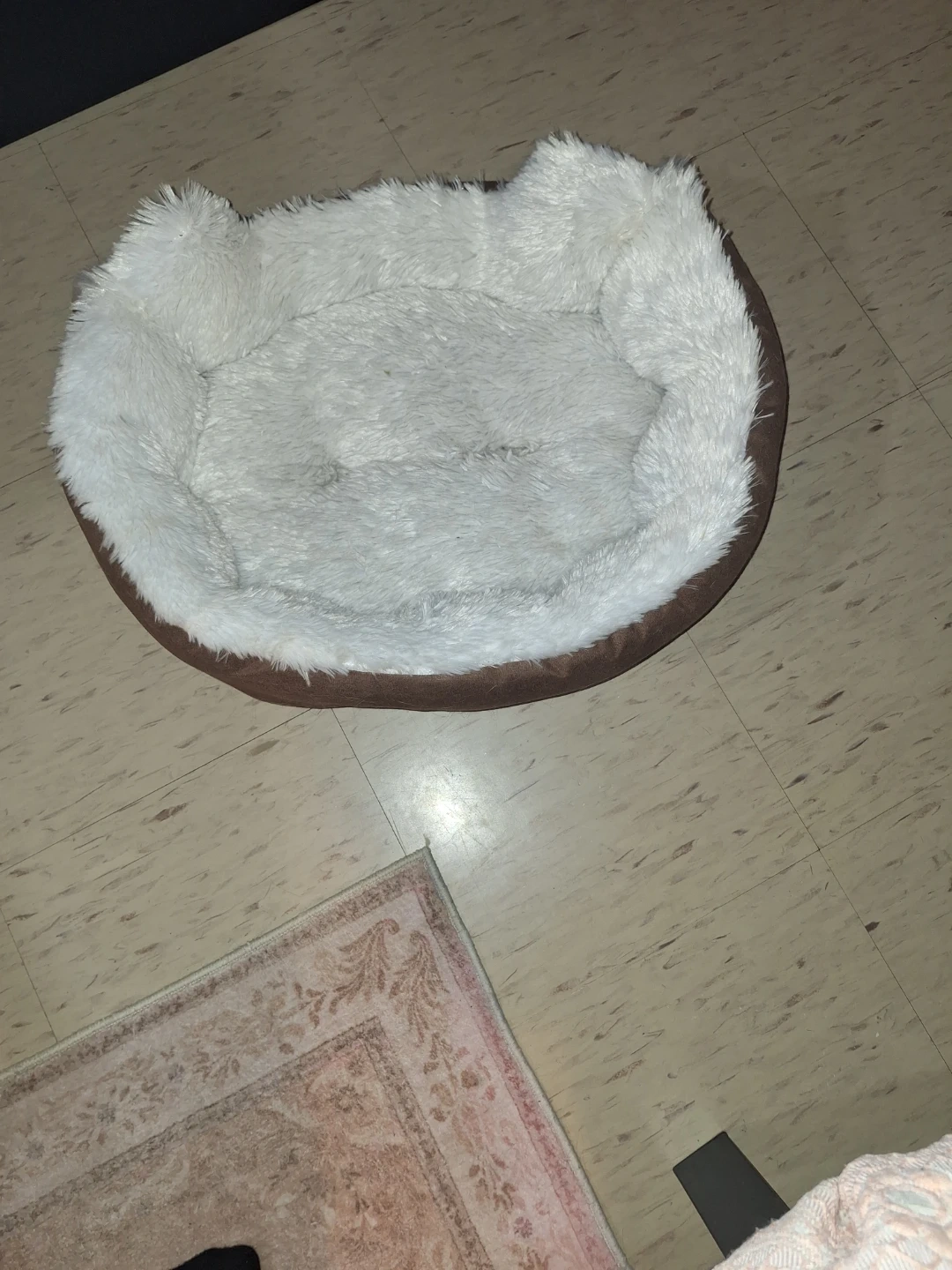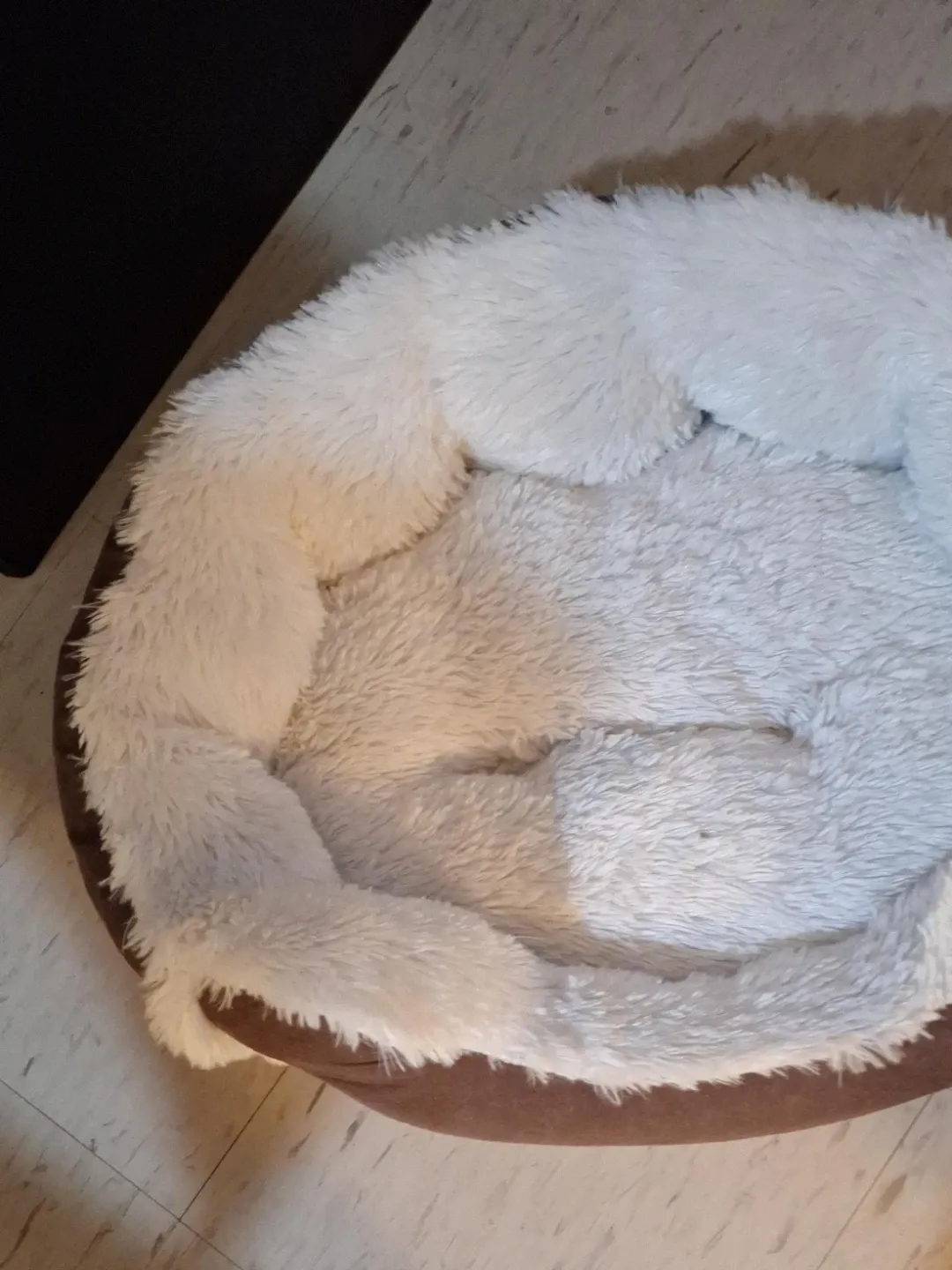 Super soft and cozy pet bed. It's got a plush, fluffy interior and a comfortable bolster for your pet to rest their head on. The exterior is a durable brown fabric. It's perfect for cats or small dogs looking for a comfy spot to nap!
