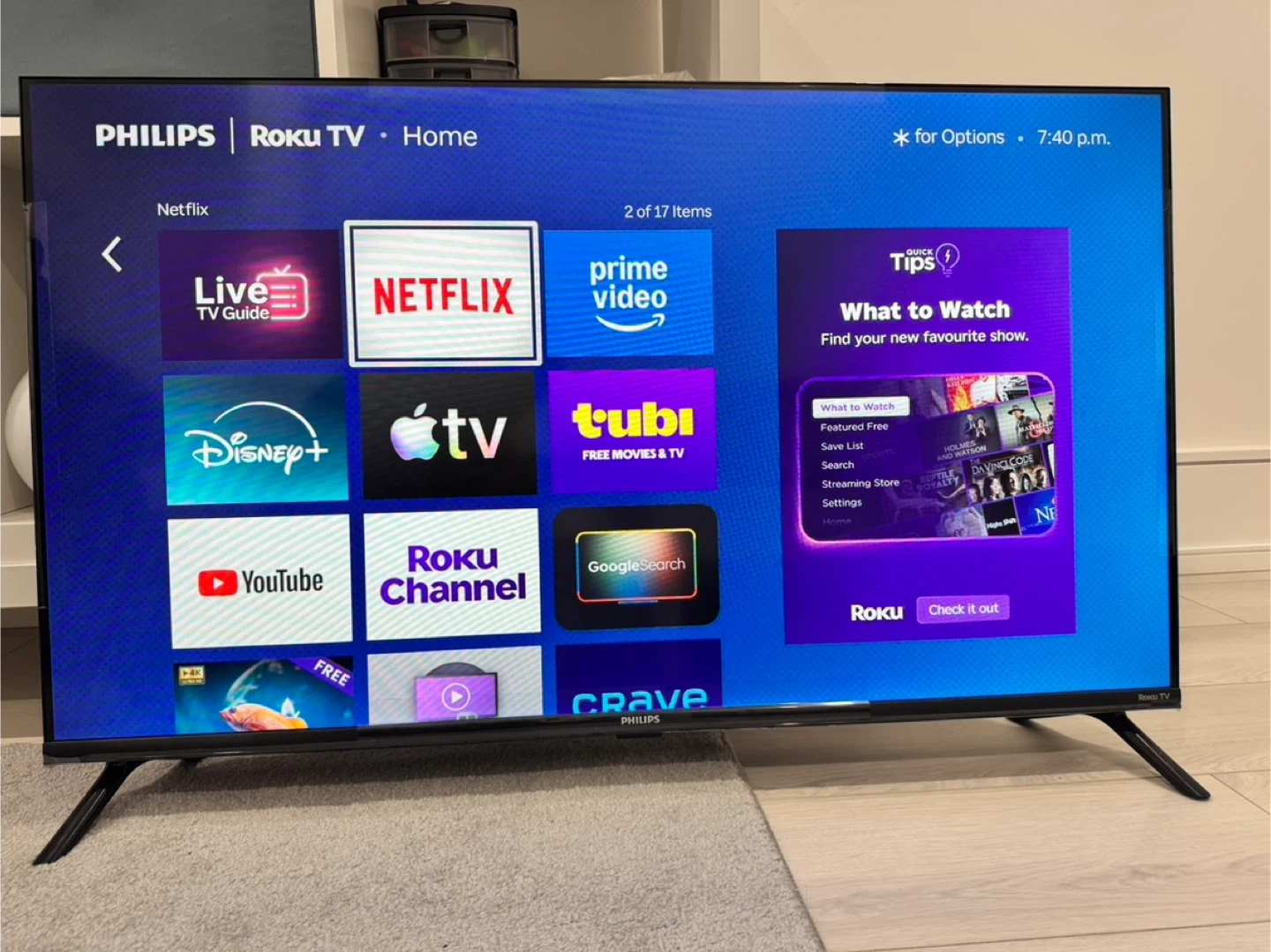 This is a Philips Roku TV. It's a smart TV with built-in streaming apps. Perfect for enjoying your favourite shows and movies! I have used it less than two months and i still have the TV’s box.