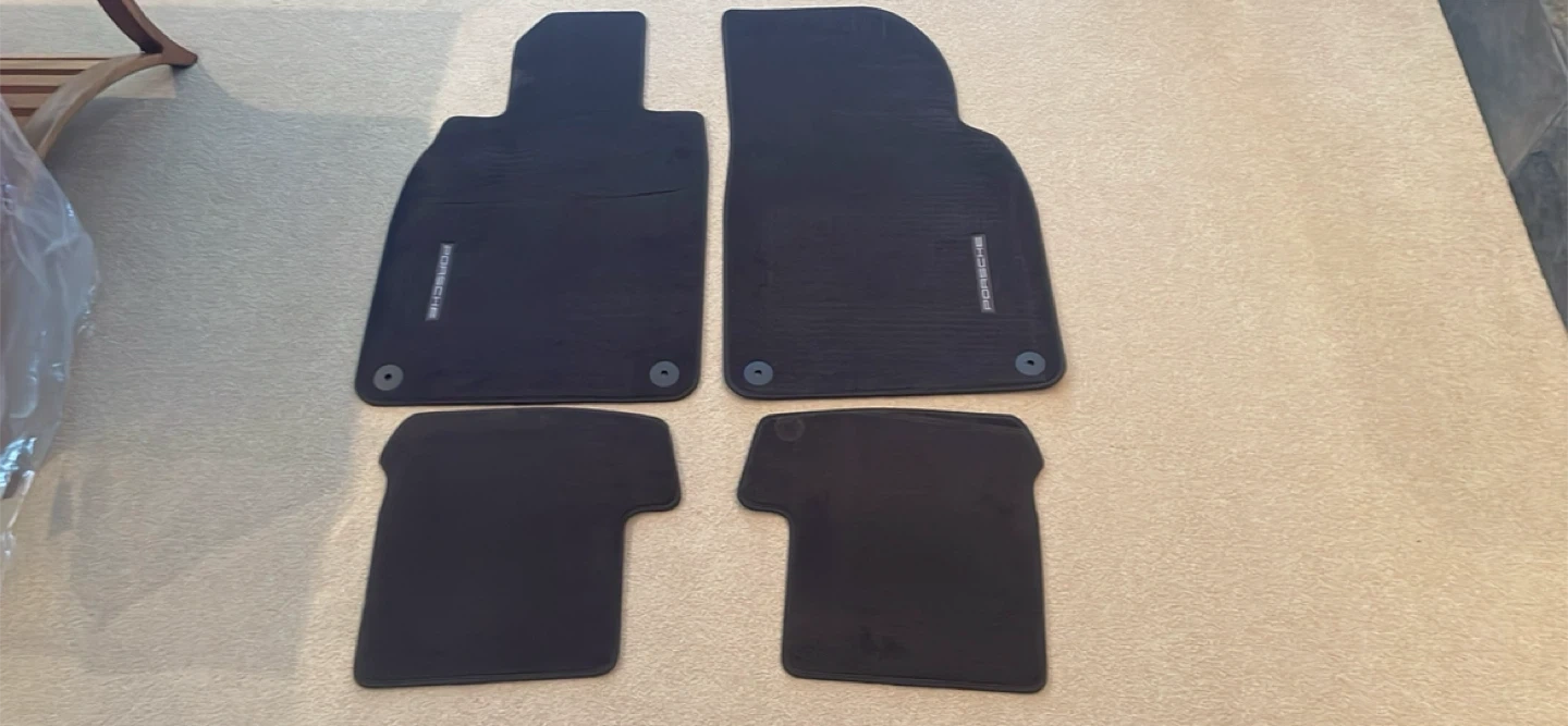 2018 Porsche 911 floor mats. BRAND NEW, never used. Full set of 4, Expresso color. Two front, two rear. Features the Porsche logo on the front mats. Includes anchor points for secure placement.