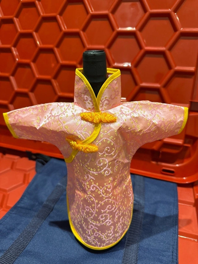 Add a touch of whimsy to your wine presentation with this unique, pre-owned wine bottle cover, designed to resemble a traditional cheongsam dress. * Elegant cheongsam design, brand new * Eye-catching * Makes a great gift This charming cover is sure to spark conversation and add a cultural flair to any gathering. It's perfect for gifting or for simply dressing up your favourite bottle.