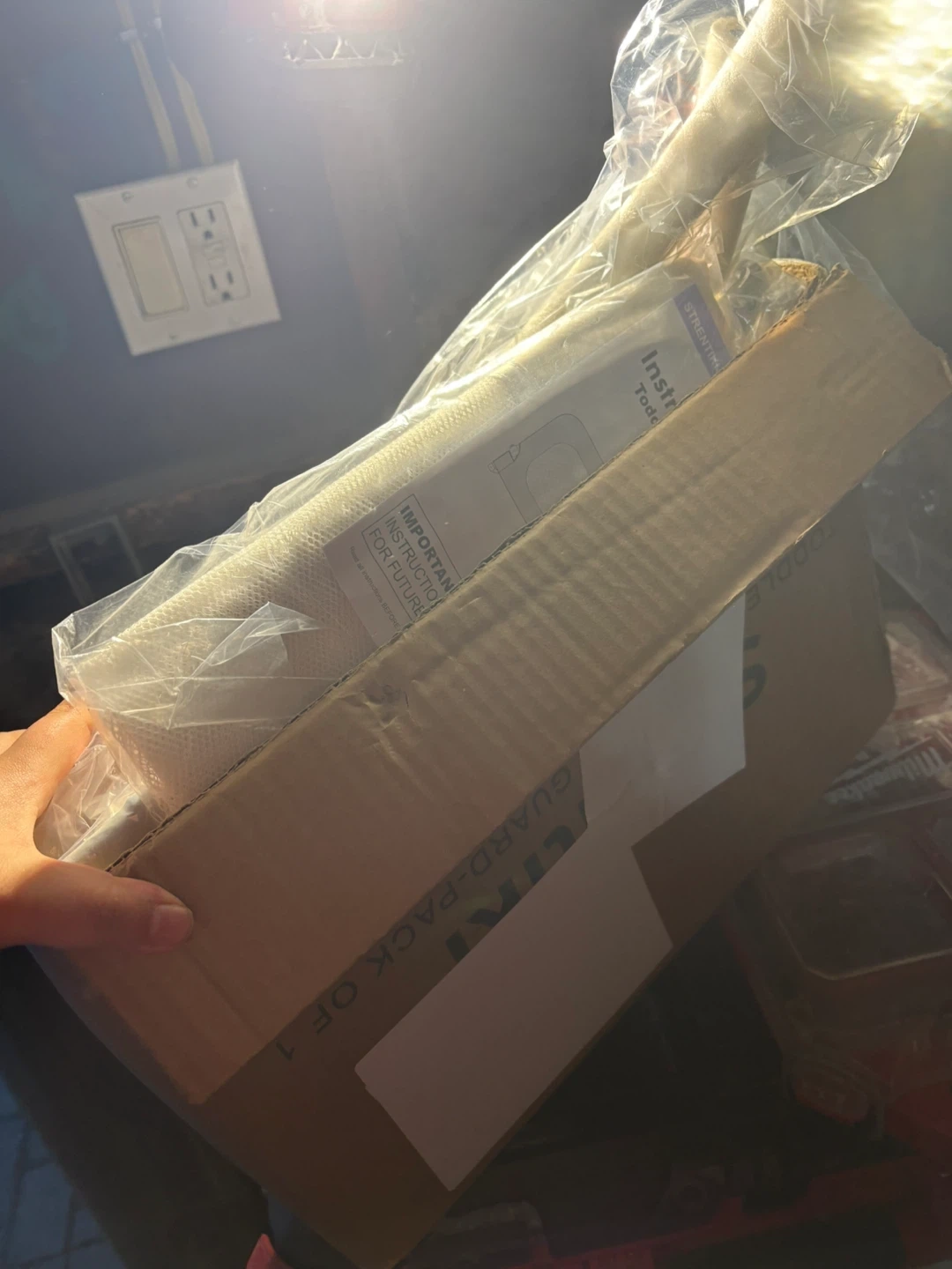 This is a toddler bed rails guard for safety. It includes an instruction manual. It is designed to prevent toddlers from falling out of bed while they sleep.