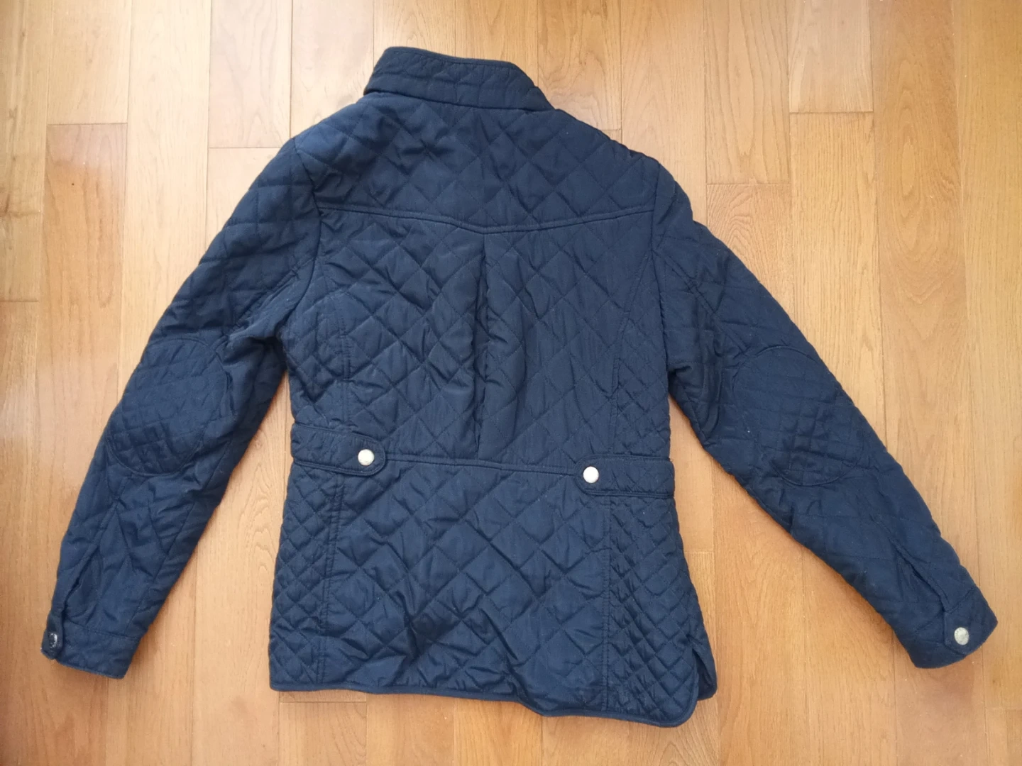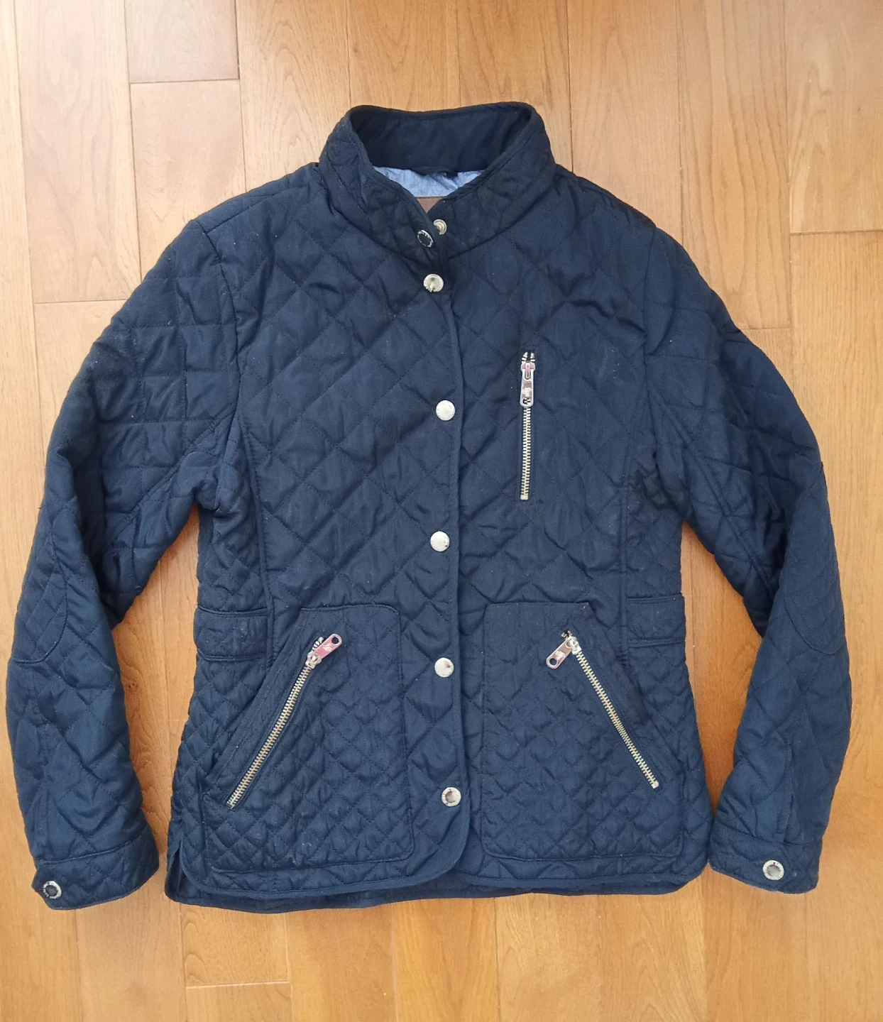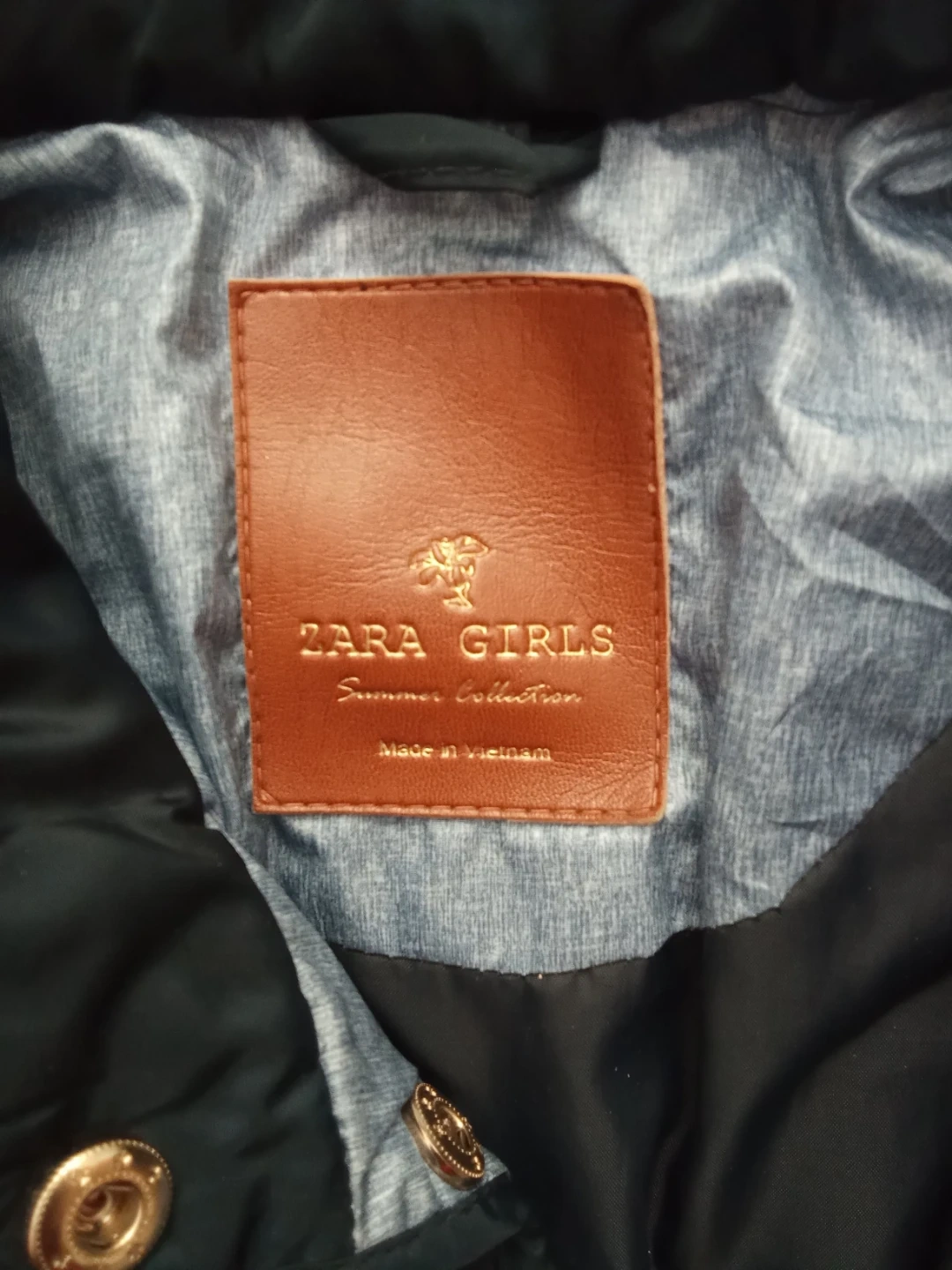 ZARA GIRLS quilted jacket from the Summer Collection. It's a navy blue colour with gold zippers. This jacket is suitable for cooler spring and summer evenings.