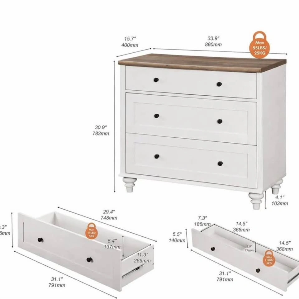 - 3 drawers