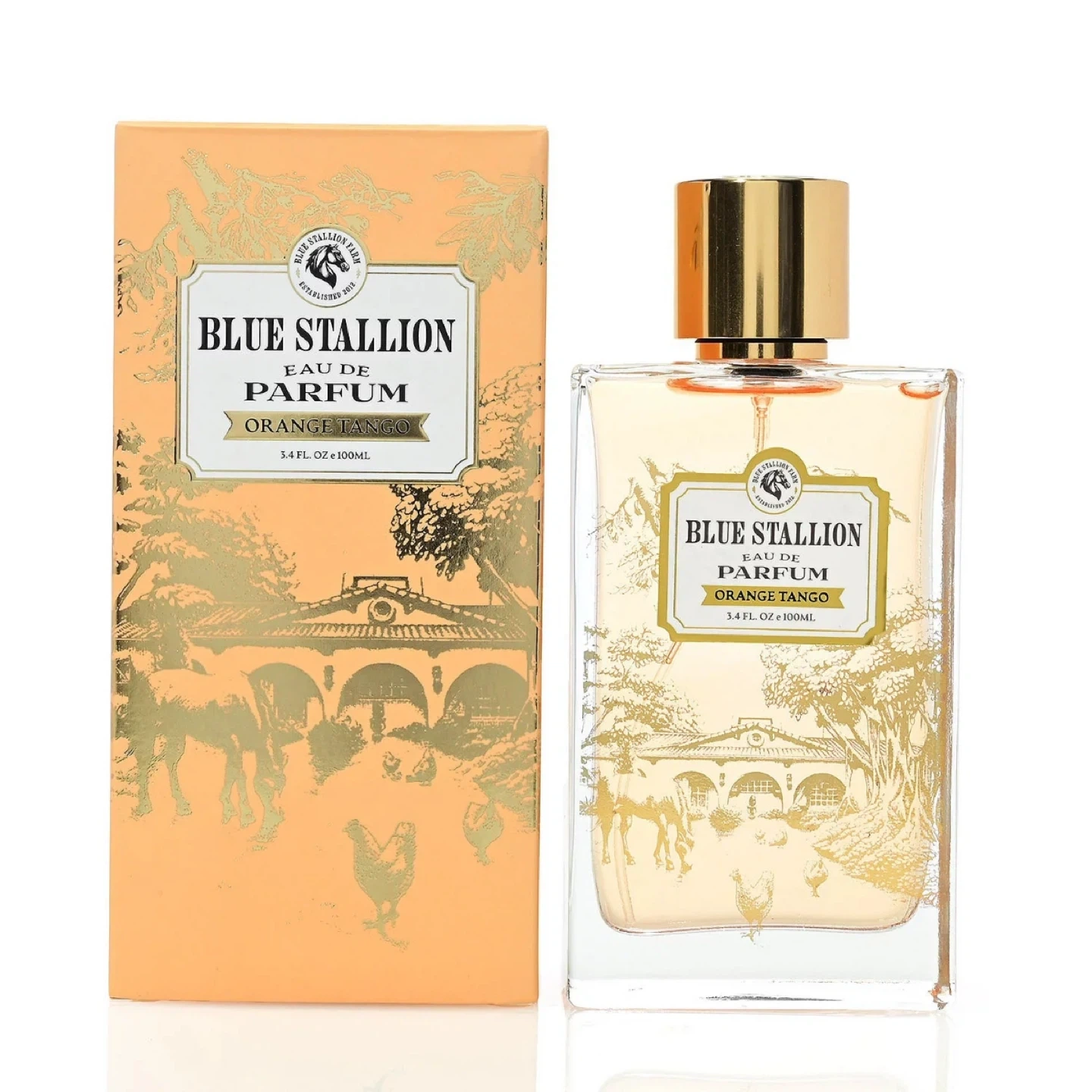 Blue Stallion Orange Tango Eau de Parfum. Includes original box. 100ml bottle. This fragrance is suitable for everyday wear.