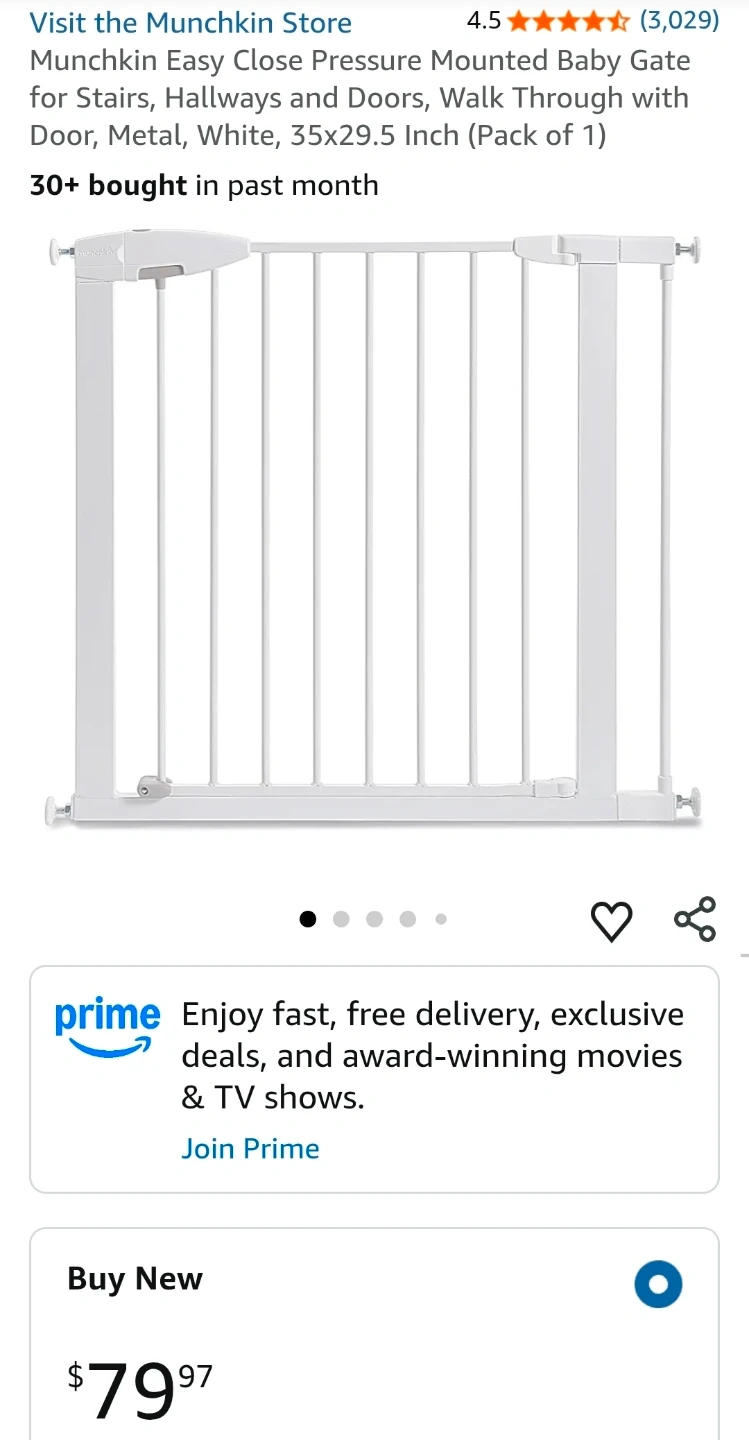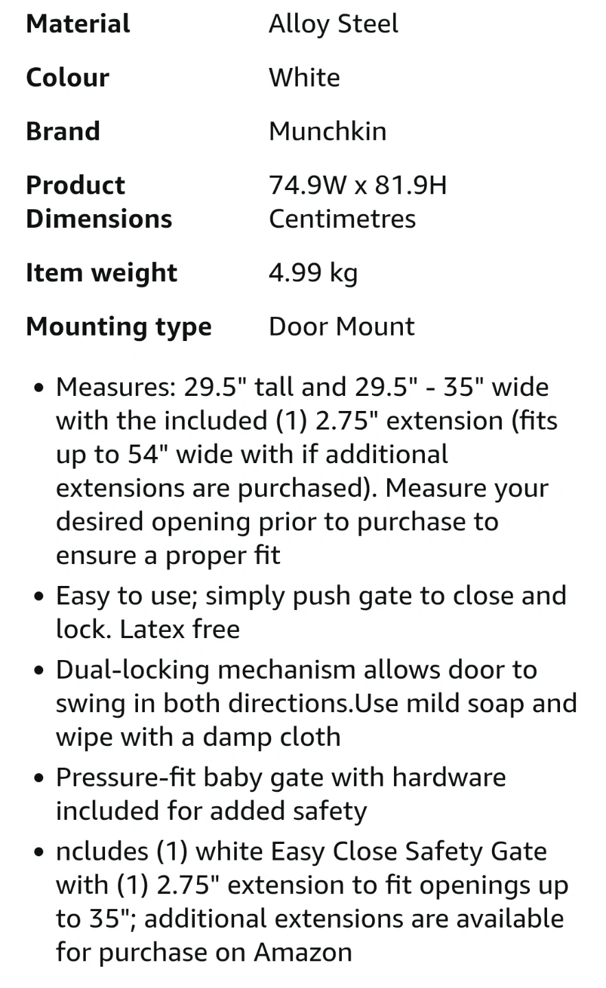 This Munchkin Easy Close Pressure Mounted Baby Gate is perfect for keeping your little one safe! It is designed for stairs, hallways, and doorways.