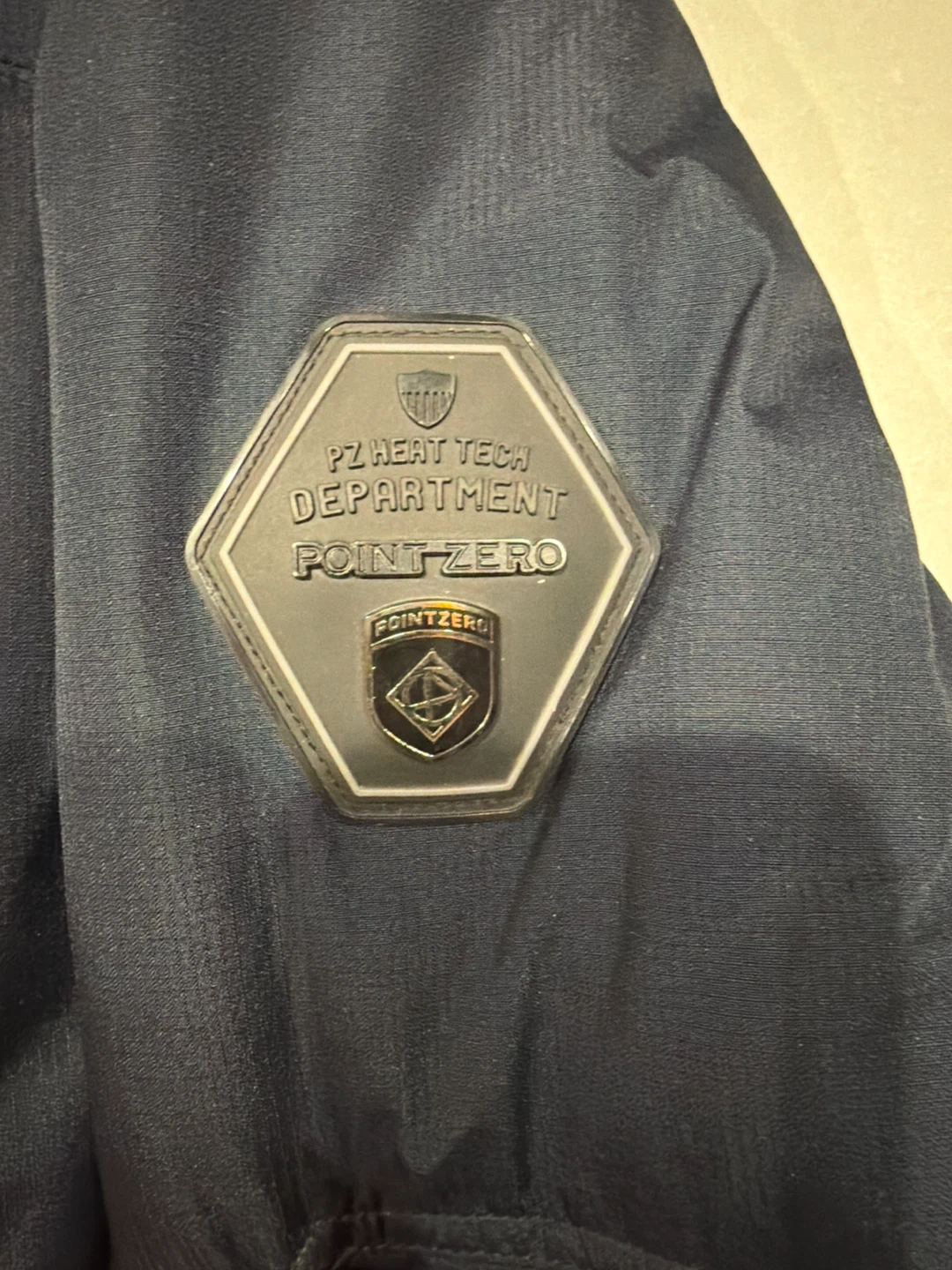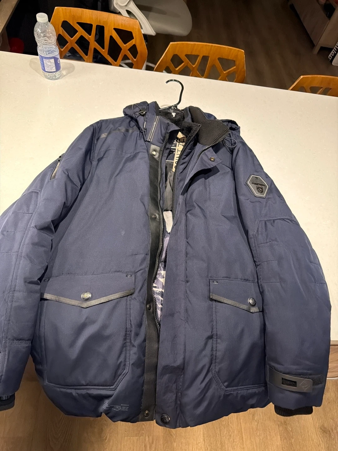 This Point Zero navy parka jacket is designed for warmth with premium down insulation. It's rated for temperatures down to -40°C. The jacket's size is M/M.