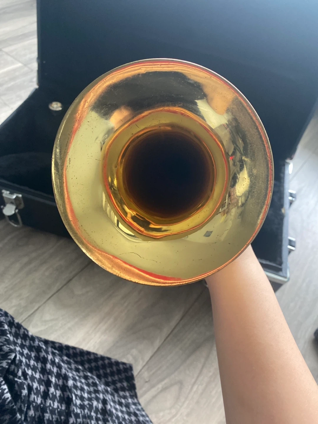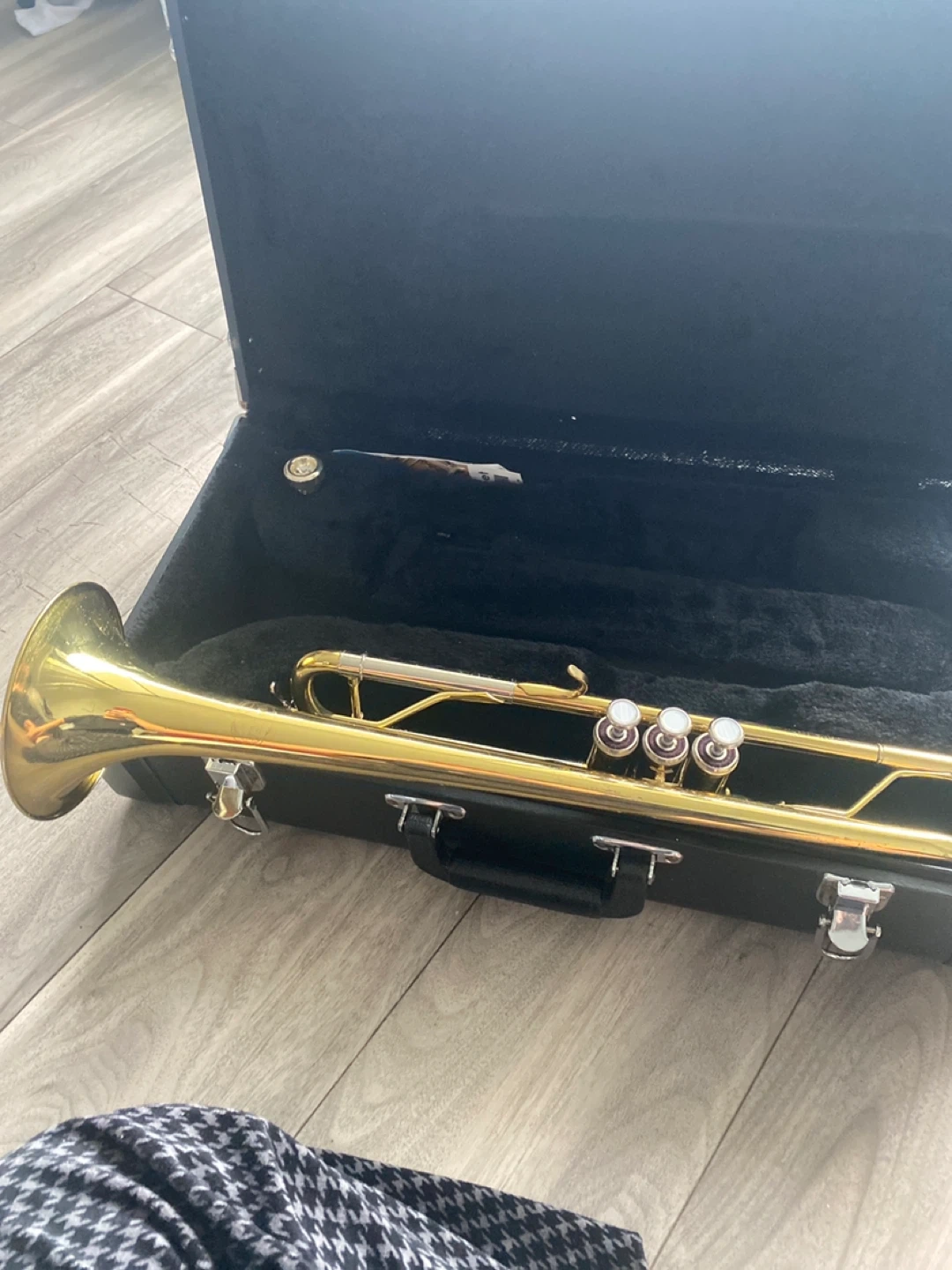 Gold coloured trumpet, comes with a black hardshell case and cleaning supplies. It has three valves. Perfect for beginner or intermediate musicians, amazing condition! price negotiable!
