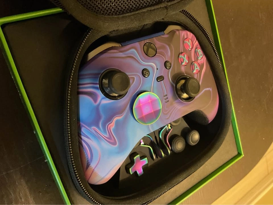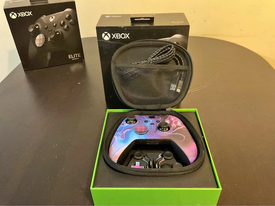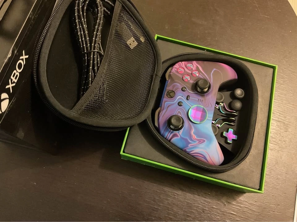 For Xbox Series X/S, Xbox One, Windows, Android, and iOS. This is a brand new, customized Elite Series 2 controller, open box but in excellent condition. There's no stick drift or sticky buttons. It comes with the original case, box, and all accessories. Feel free to test the controller before you buy. I can do bundle deals if you're interested in multiple items, just message me first. The price is negotiable, so feel free to send a reasonable offer. Please see the photos and ask any questions you have before purchasing. All sales are final, but I will replace the controller with a new one if something happens to it within 2 months, provided there's no physical or cosmetic damage. Please ask questions to confirm.